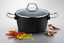 2001 Fissler представляет новую линию посуды black edition из литого алюминия. Высококачественное покрытие позволяет готовить пищу с минимальным использованием жира и особенно подходит для простого и быстрого питания. | |