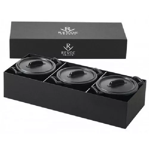 642122 Подарунковий набір з 3-х кокотниць чорних, 200 мл, 32,6х12,8х7 см brend art - інтернет магазин europosud.ua!