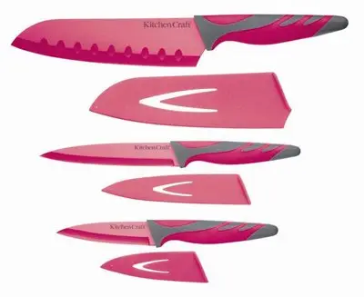 178138 CW Набір ножів з піхвами та м`якою ручкою 3 одиниці рожевий Kitchen Craft - інтернет магазин europosud.ua!