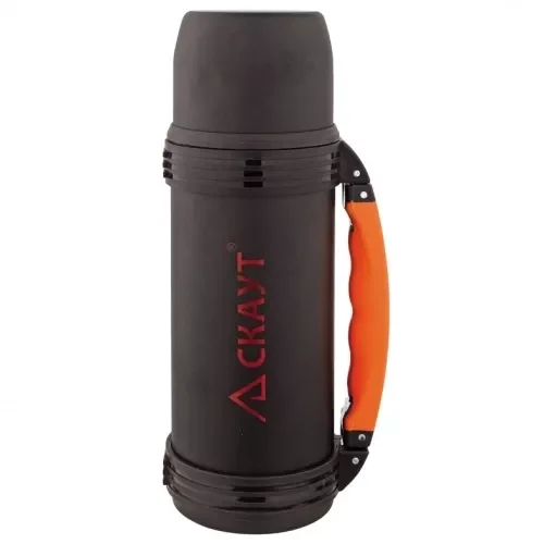 2004 Термос 1000мл з нерж. ст. з помаранчевою ручкою (логотип Скаут, чорна матова поверхня) brend br - купити в магазині