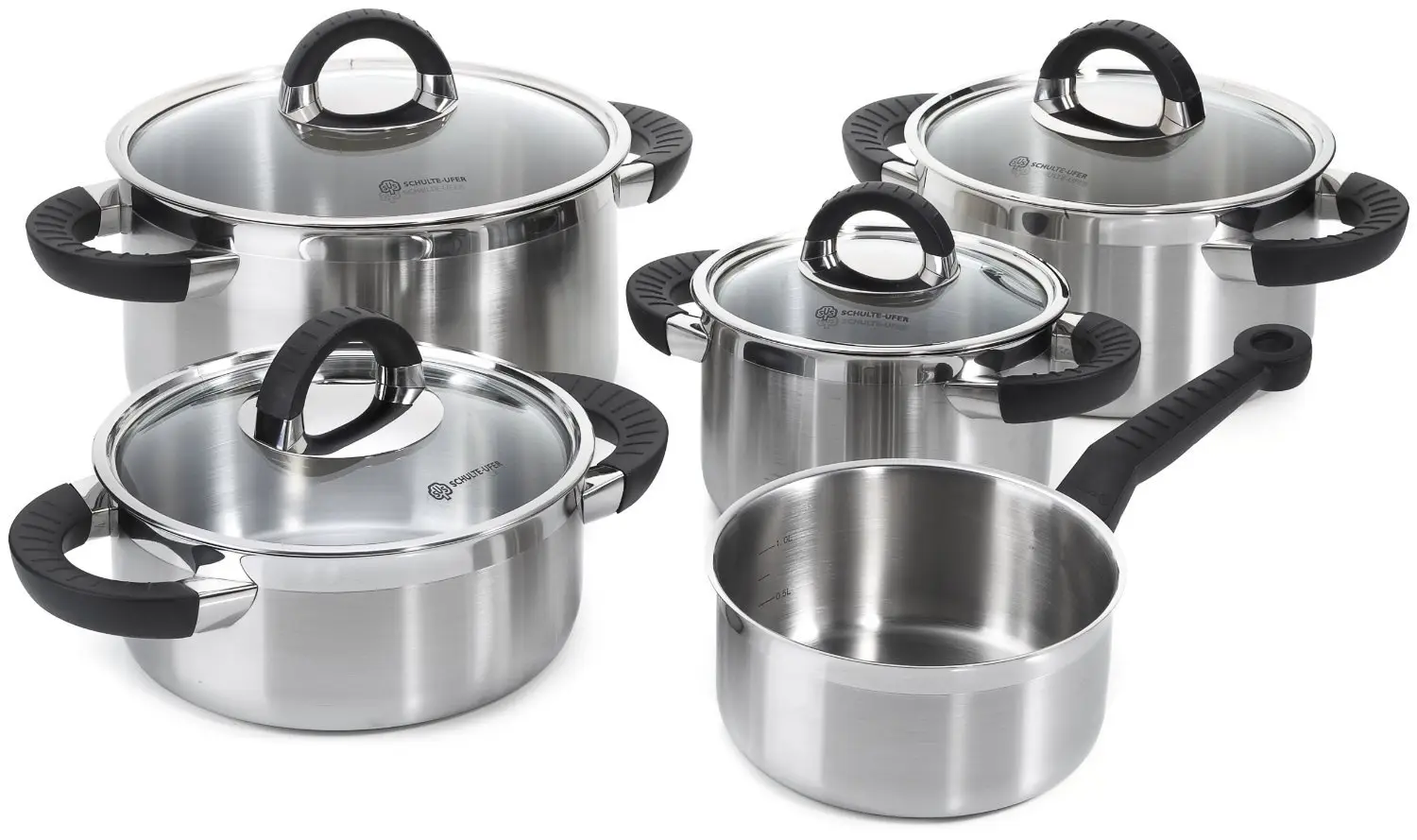 Набір каструль з кришками 9предм: 2,0 л, 2,5 л, 3,5 л, 5,5 л, ківш 1,4 л Black Betty i, арт.set456 b - інтернет магазин europosud.ua!