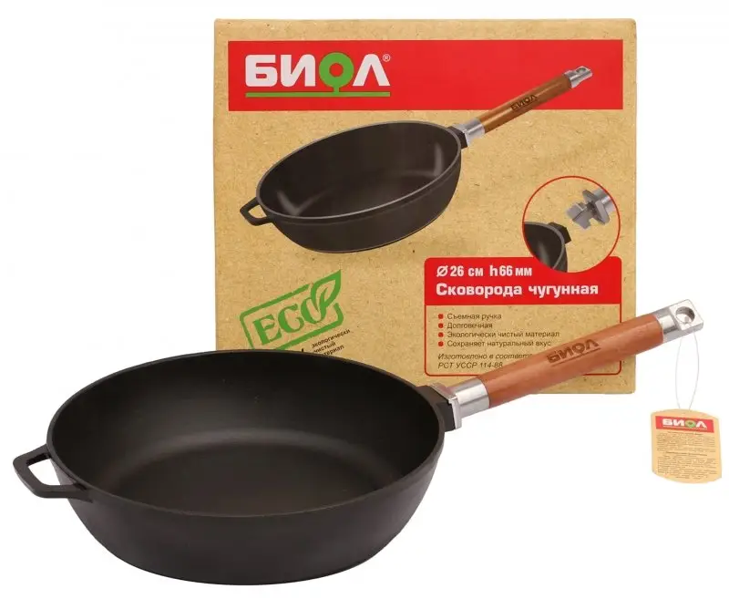 0326 Сковорода чавунна без кр-ки, ручка знімна 26см БІОЛ Биол - інтернет магазин europosud.ua!
