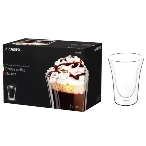 AR2630G Набір чашок Ardesto з подвійними стінками для латте, 300 мл, 2 од., борошикатне скло - купити в магазині
