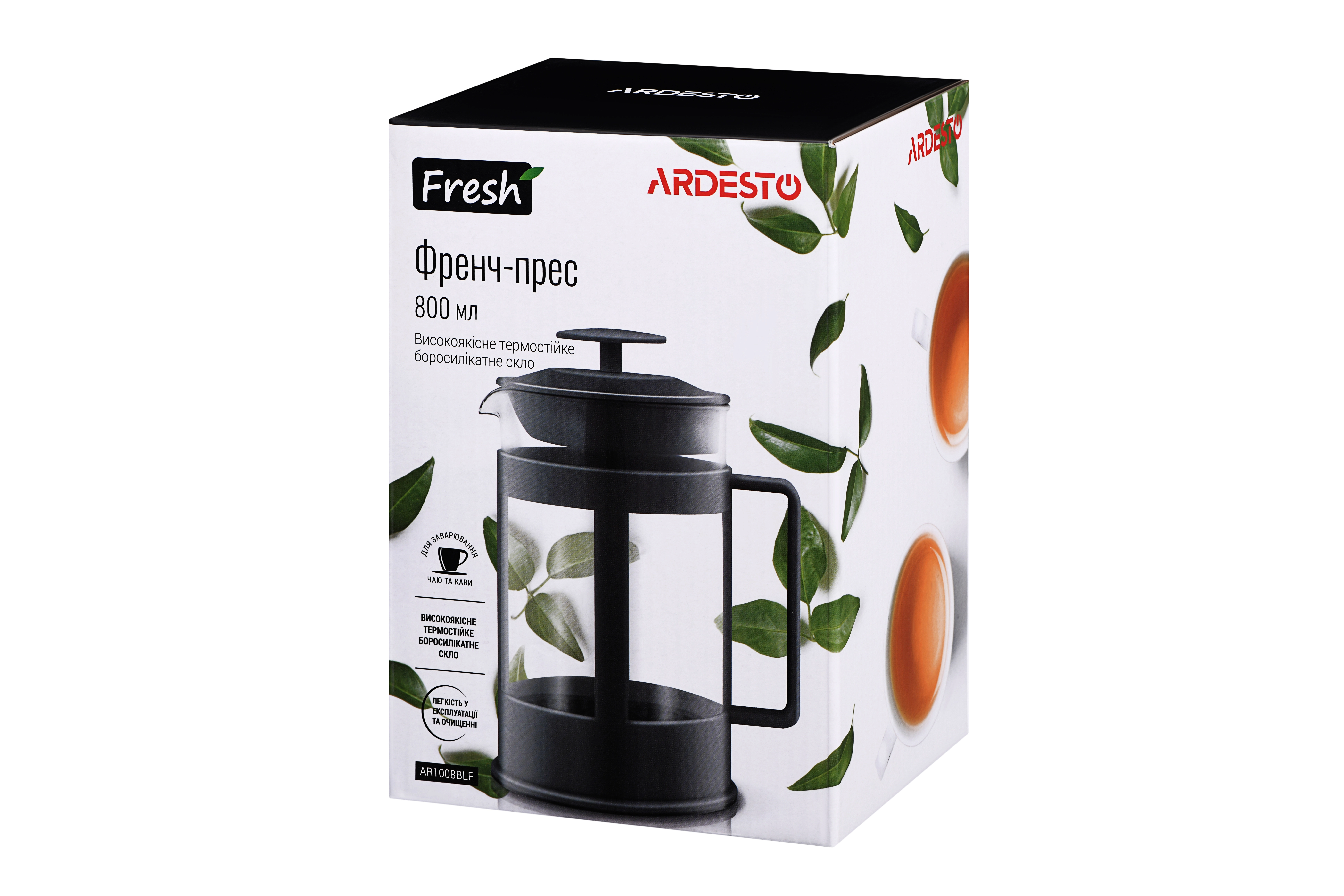 AR1008BLF Френч-прес Ardesto Fresh, 800 мл, чорний, пластик, скло - купити в магазині