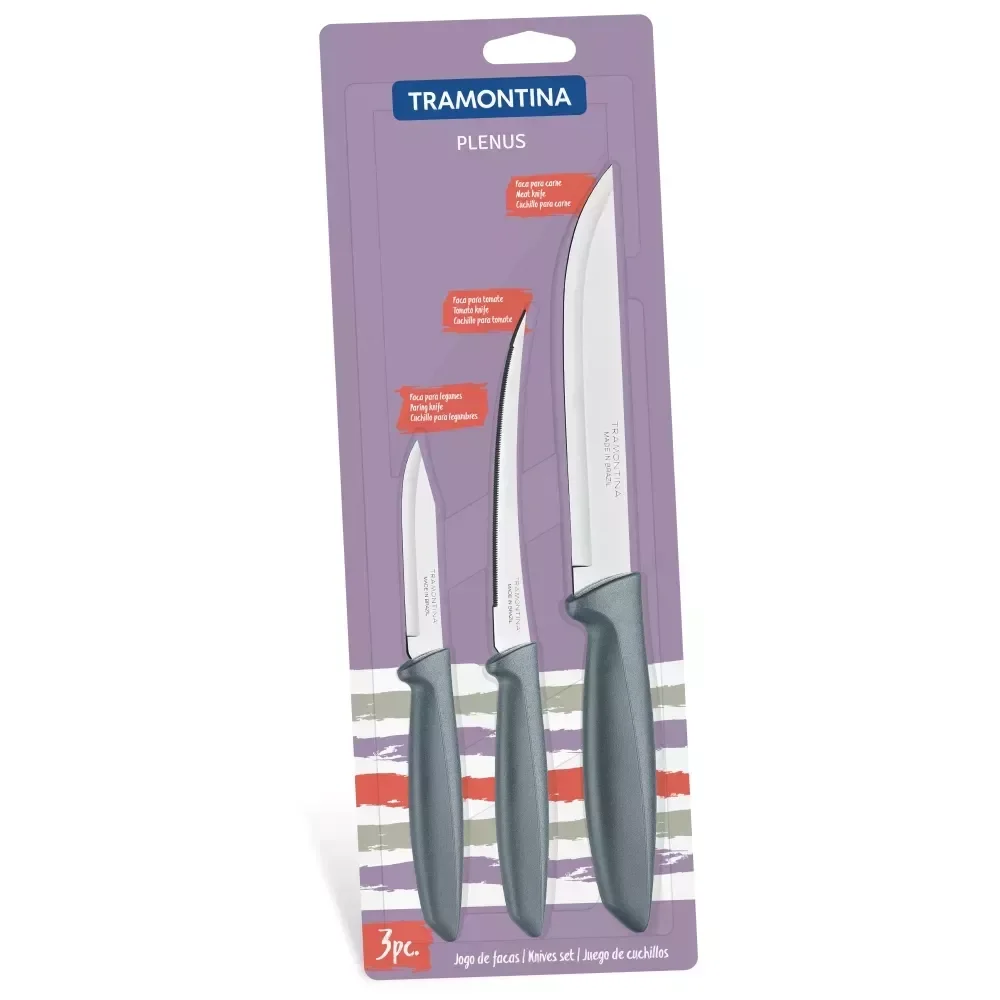 Набір ножів Tramontina Plenus grey, 3 предмети Tramontina 23498 613 - інтернет магазин europosud.ua!