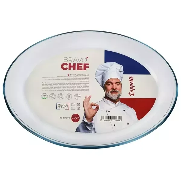 Форма з кришкою BRAVO CHEF форма склянна овальна 35х24х6см BC-347B FR BC-347B FR - інтернет магазин europosud.ua!
