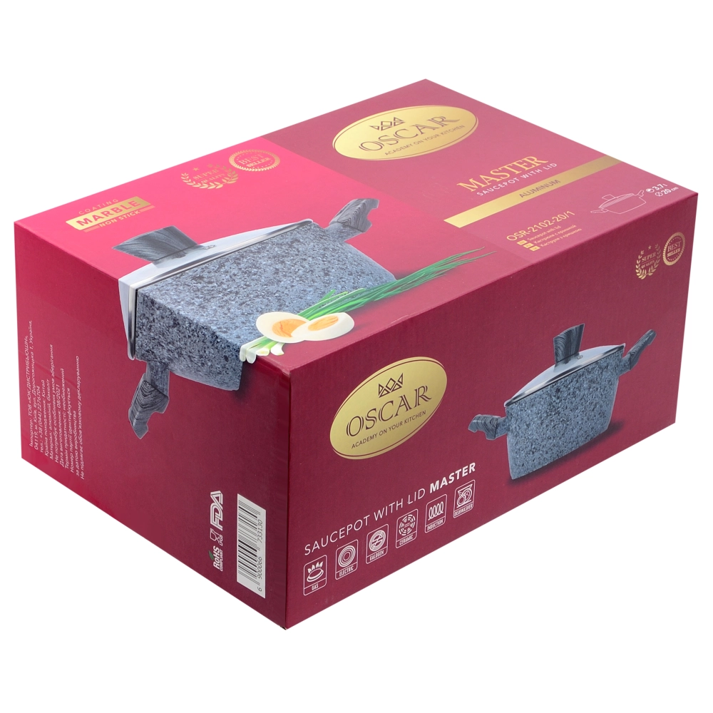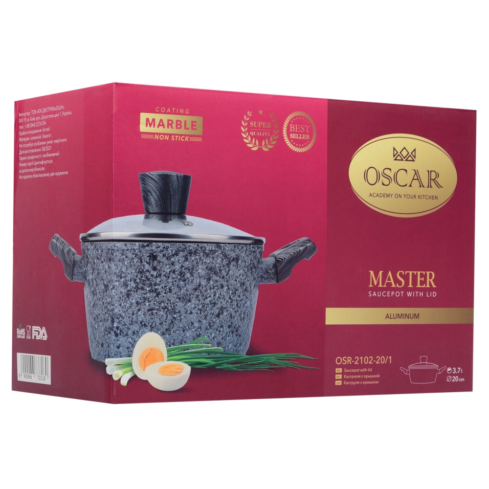Каструля OSCAR MASTER глибока алюмінієва 20 см 3.7 л з кришкою OSR-2102-20 1 OSR-2102-20 1 - інтернет магазин europosud.ua!