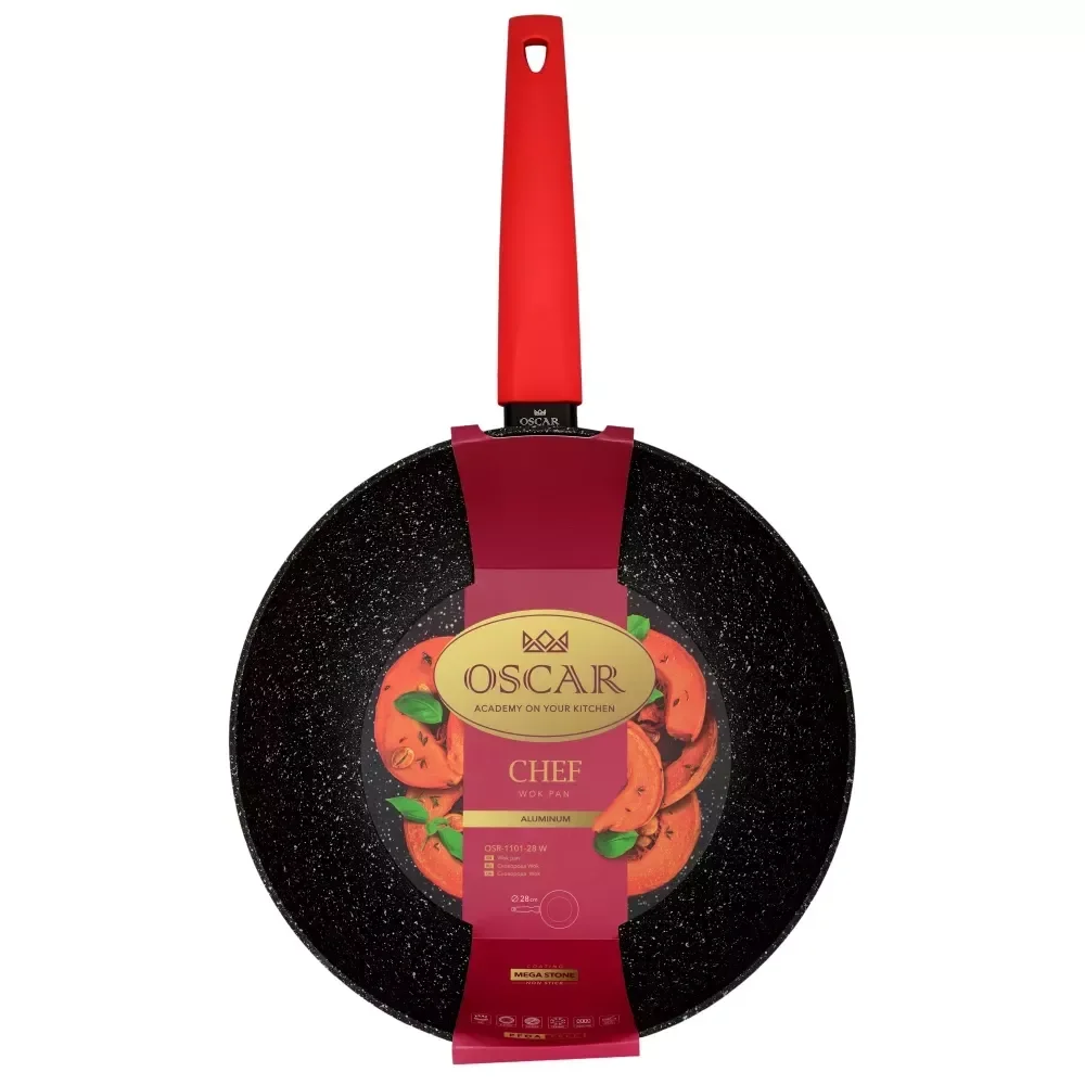 Сковорода OSCAR CHEF ВОК 28 см б кришки OSR-1101-28 w - інтернет магазин europosud.ua!
