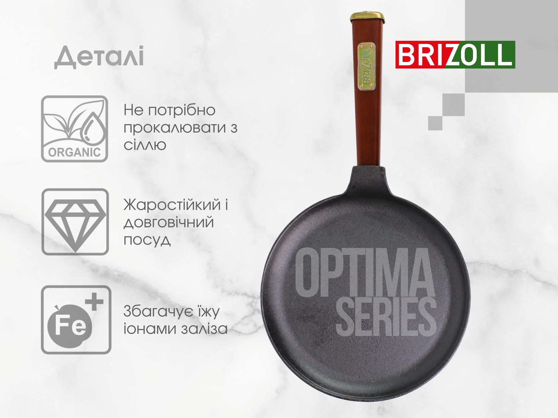 Наступна позиція - O2035-P Сковорода чавунна 200х38,5 мм Optima BRIZOLLЯкщо у конкурентів ціна: 459₴ - телефонуйте.