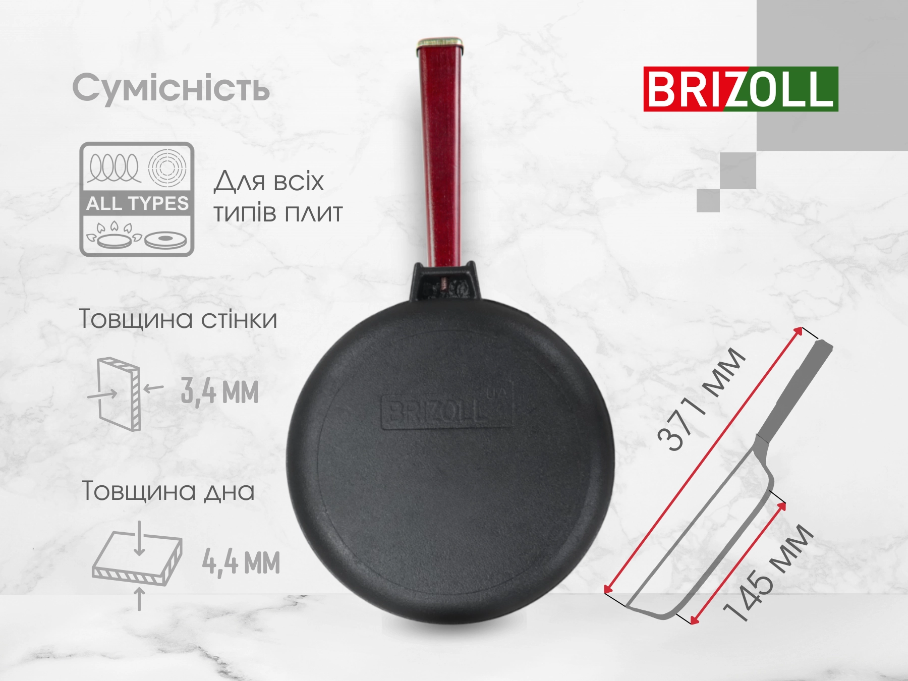 Наступна позиція - O2240-P2-C Сковорода чавунна 220х42,5 мм Optima-Bordo BRIZOLLЯкщо у конкурентів ціна: 499₴ - телефонуйте.