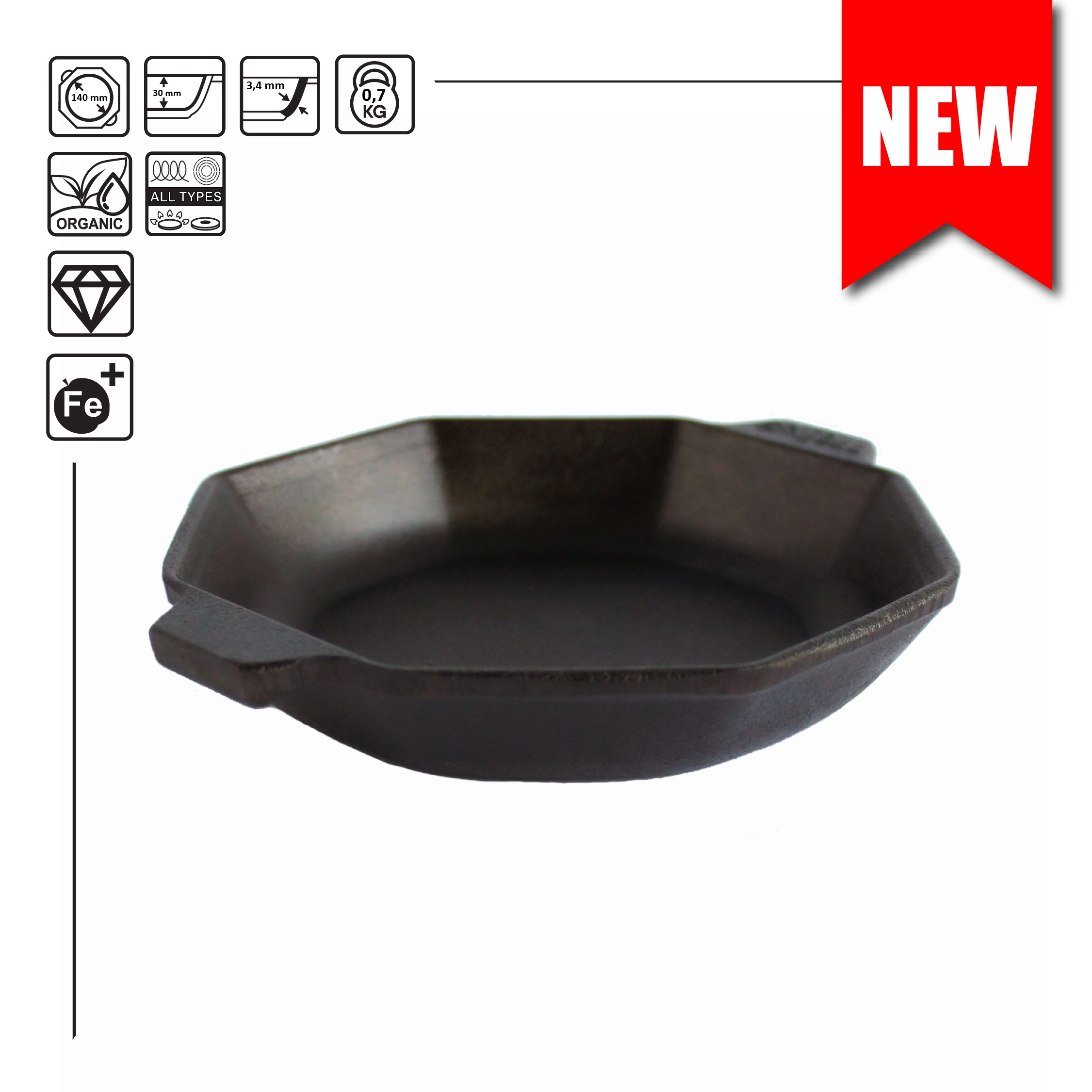 H8-1425 Сковорода чавунна порційна восьмикутна 8х140х25 мм BRIZOLL - інтернет магазин europosud.ua!