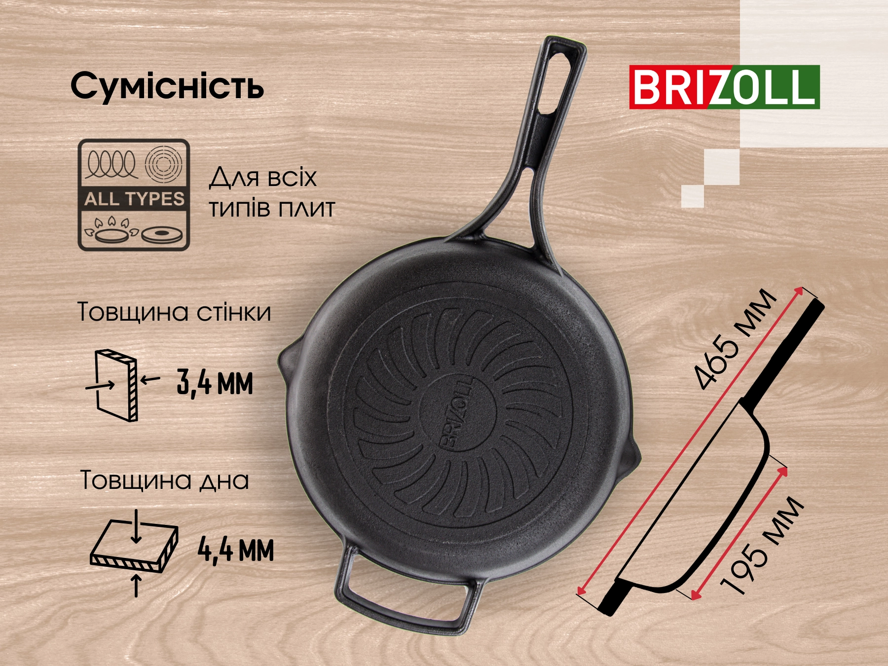 M2660P-1 Сковорода чавунна з литою ручкою 260х60 мм Monolith BRIZOLL - інтернет магазин europosud.ua!