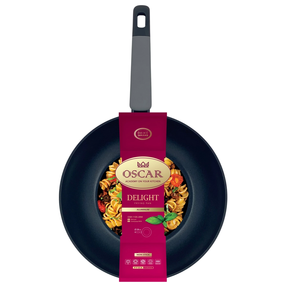 Сковорода OSCAR Delight WOK 28 см б кришки (OSR-1105-28W) - інтернет магазин europosud.ua!