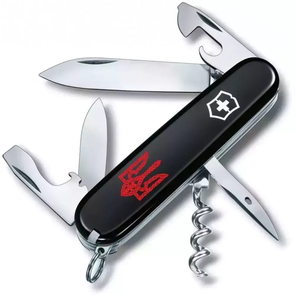 SPARTAN UKRAINE 91мм,12функ,чорн ,штоп ,Трезубець плетений червон. Victorinox Vx13603.3_T0691u - купити в магазині
