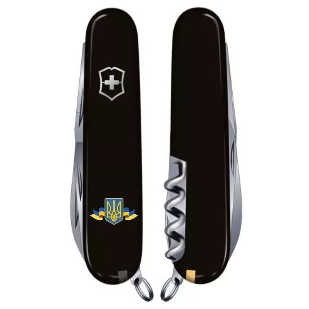 CLIMBER UKRAINE 91мм 14функ черн штоп ножн крюк Герб Украины с лентой Victorinox Vx13703.3_T1010u - купити в магазині
