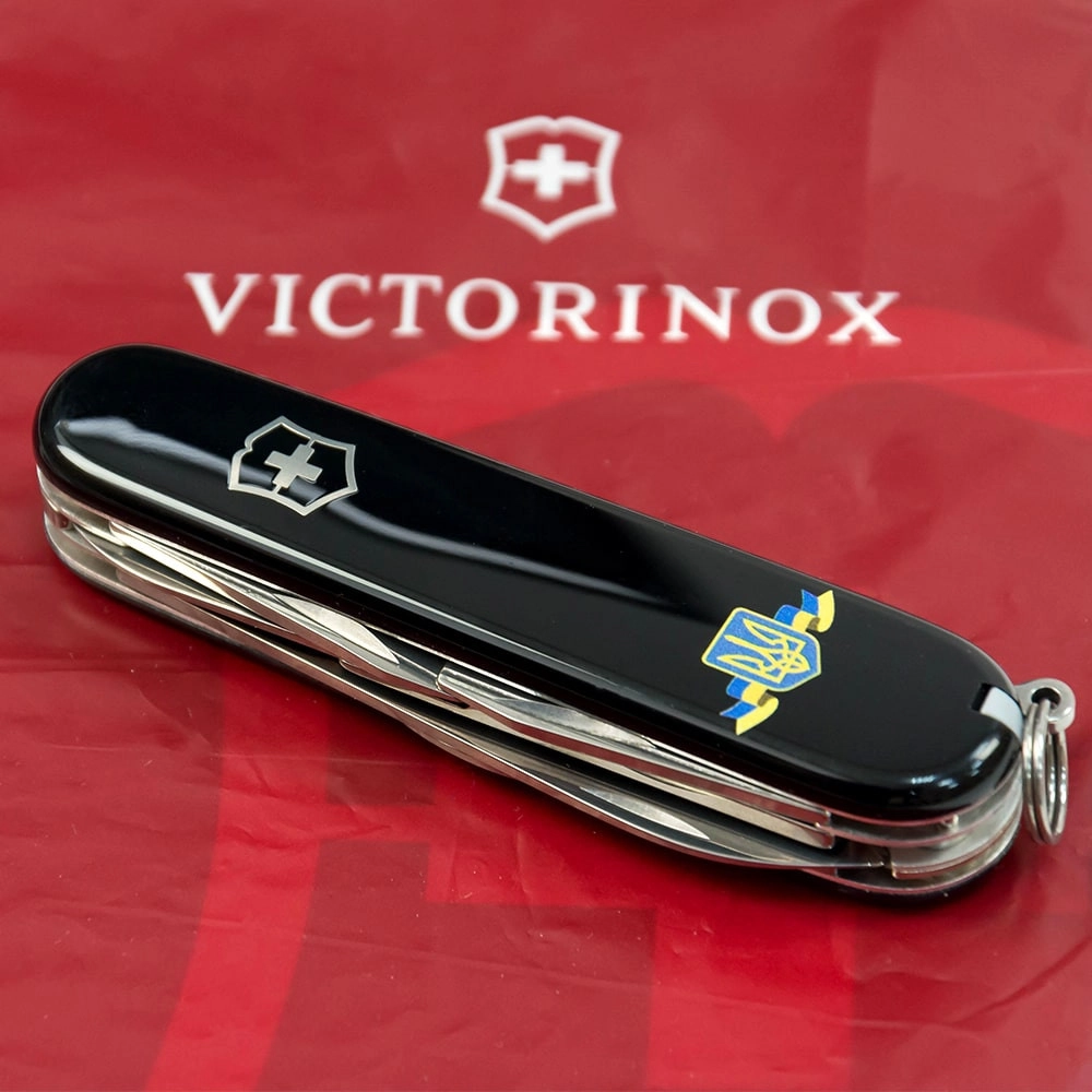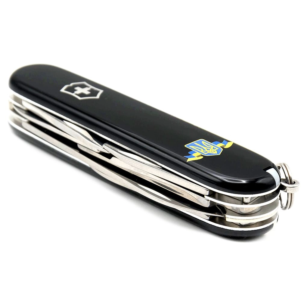 CLIMBER UKRAINE 91мм 14функ черн штоп ножн крюк Герб Украины с лентой Victorinox Vx13703.3_T1010u - інтернет магазин europosud.ua!