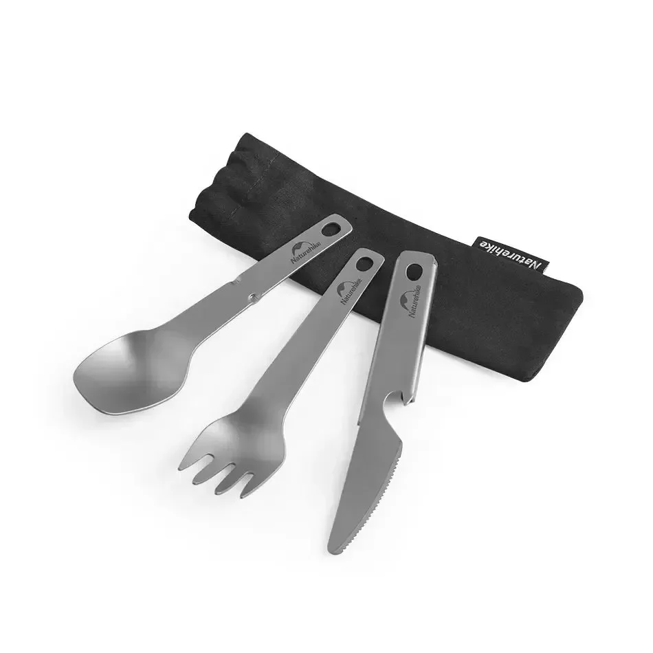Набір столових приладів (ложка, виделка, ніж) з титану Naturehike CNH22CJ017, сірий з мішечком 69275 - інтернет магазин europosud.ua!