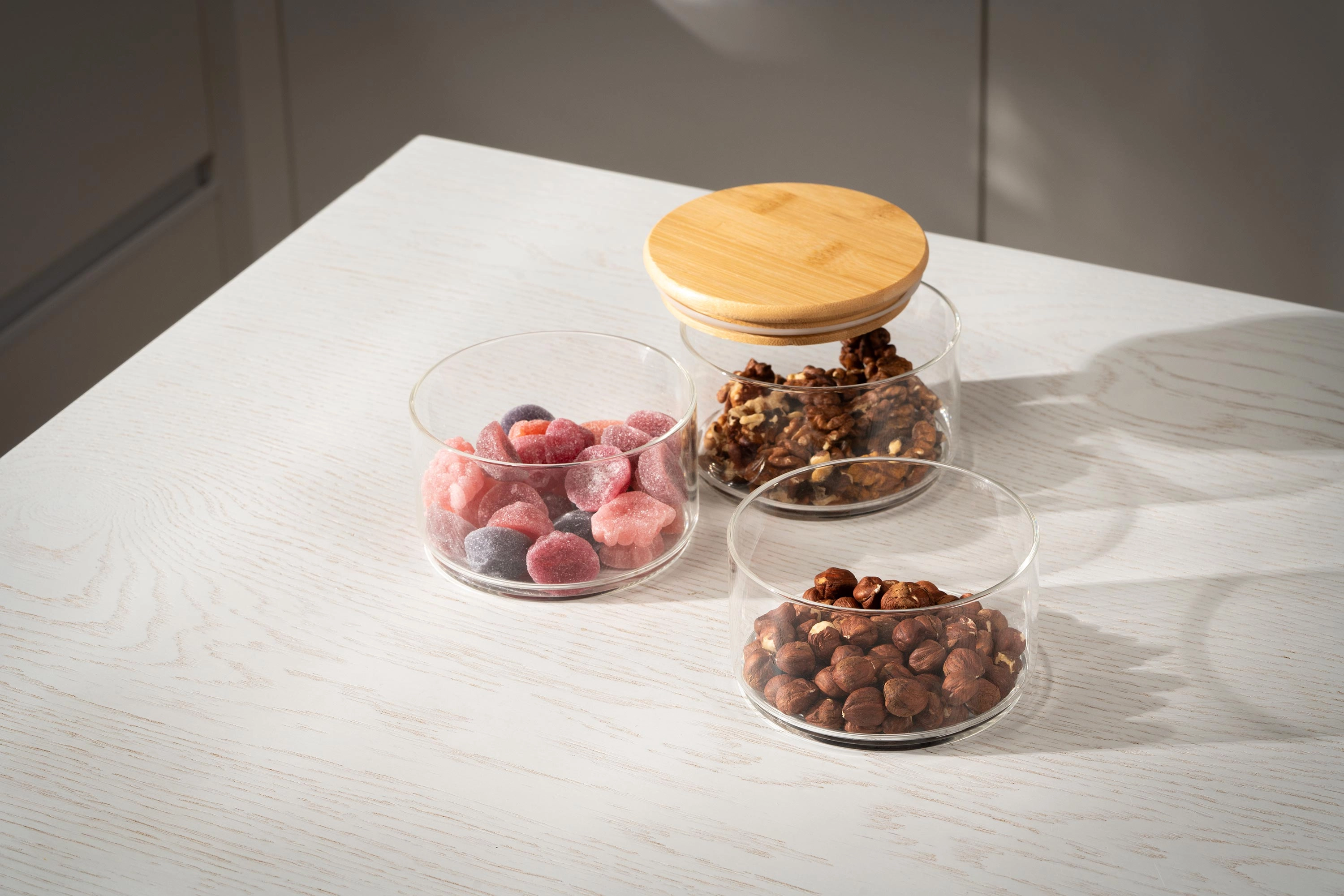 Набір ємностей для зберігання Ardesto Midori, 3х400мл, боросилікатне скло, бамбук, прозорий AR1203CB - інтернет магазин europosud.ua!