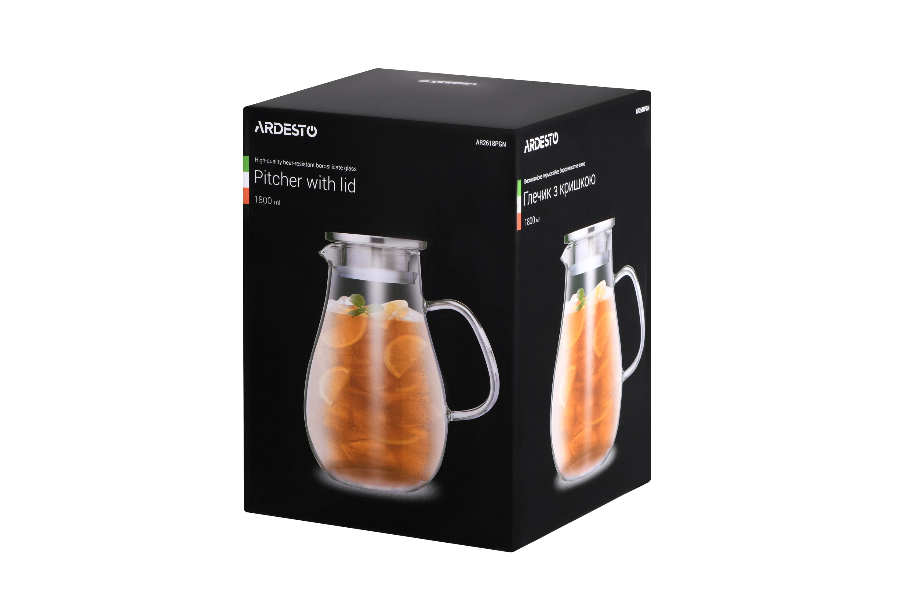 Глечик з кришкою Ardesto, 1800мл, боросилікатне скло, нержавіюча сталь, прозорий AR2618PGN - інтернет магазин europosud.ua!