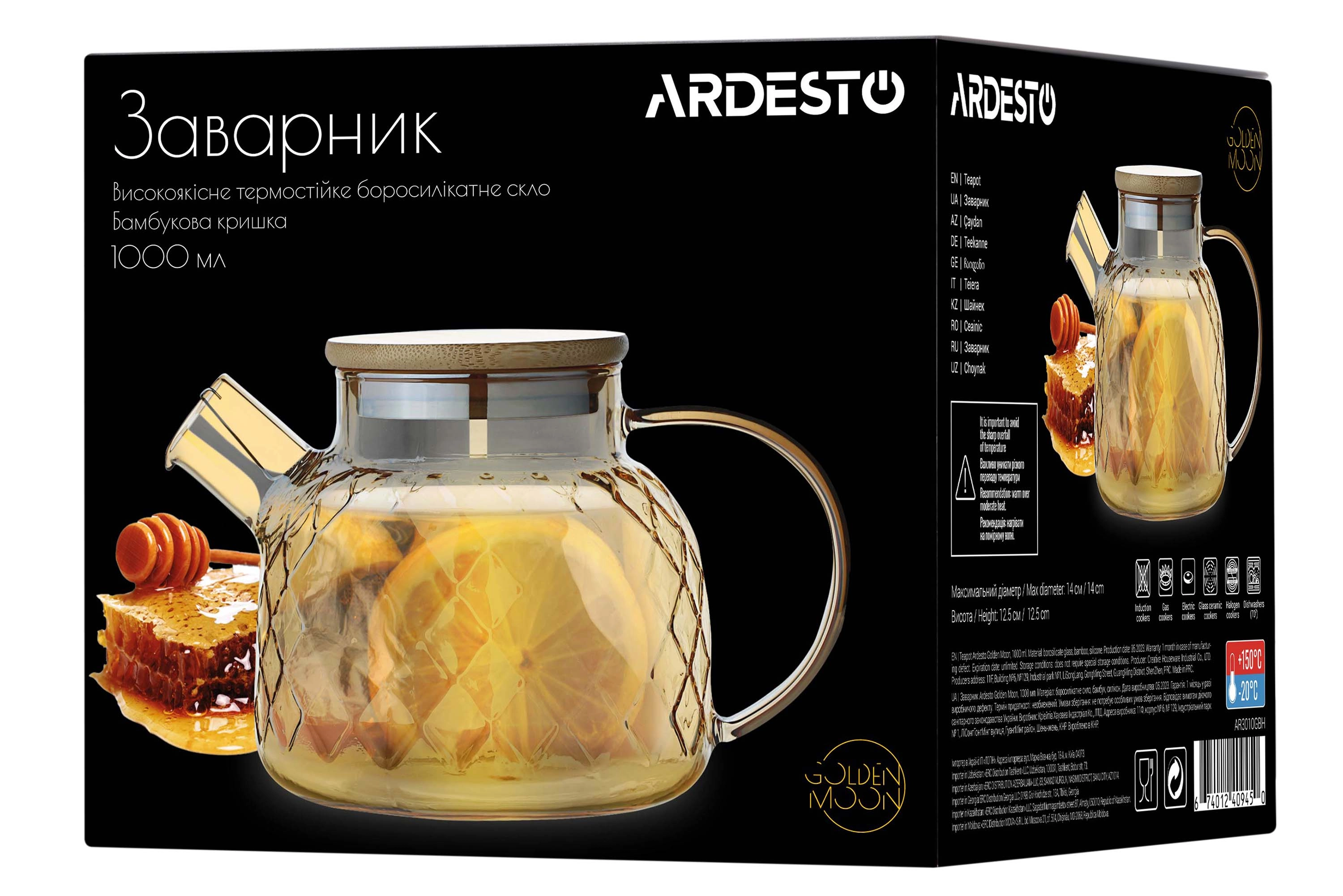 Заварник Ardesto Golden Moon Diamond, 1000мл, боросилікатне скло, бамбук, золотистий AR3010GBH - інтернет магазин europosud.ua!