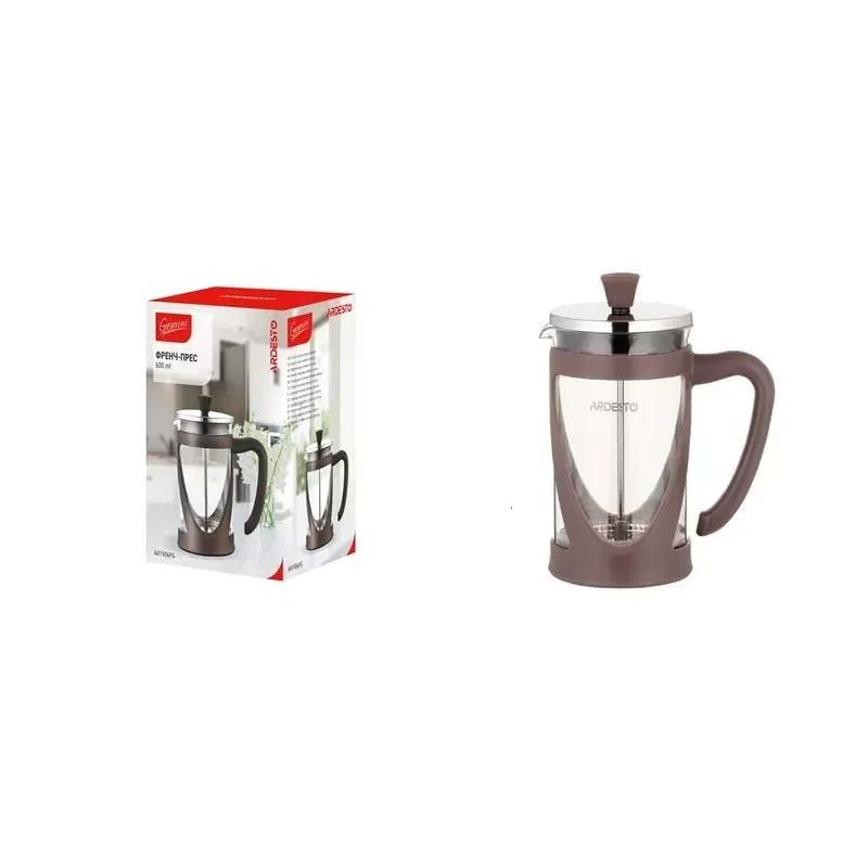 Френч-прес Ardesto Gemini, 600мл, боросилікатне скло, пластик, нержавіюча сталь, прозорий, коричневи - інтернет магазин europosud.ua!