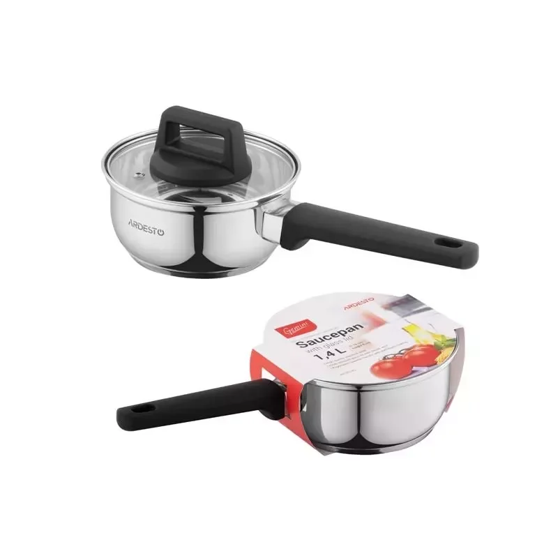 Ківш зі скляною кришкою Ardesto Gemini Piemonte, 1.4л, нержавіюча сталь, бакеліт AR3514G - інтернет магазин europosud.ua!
