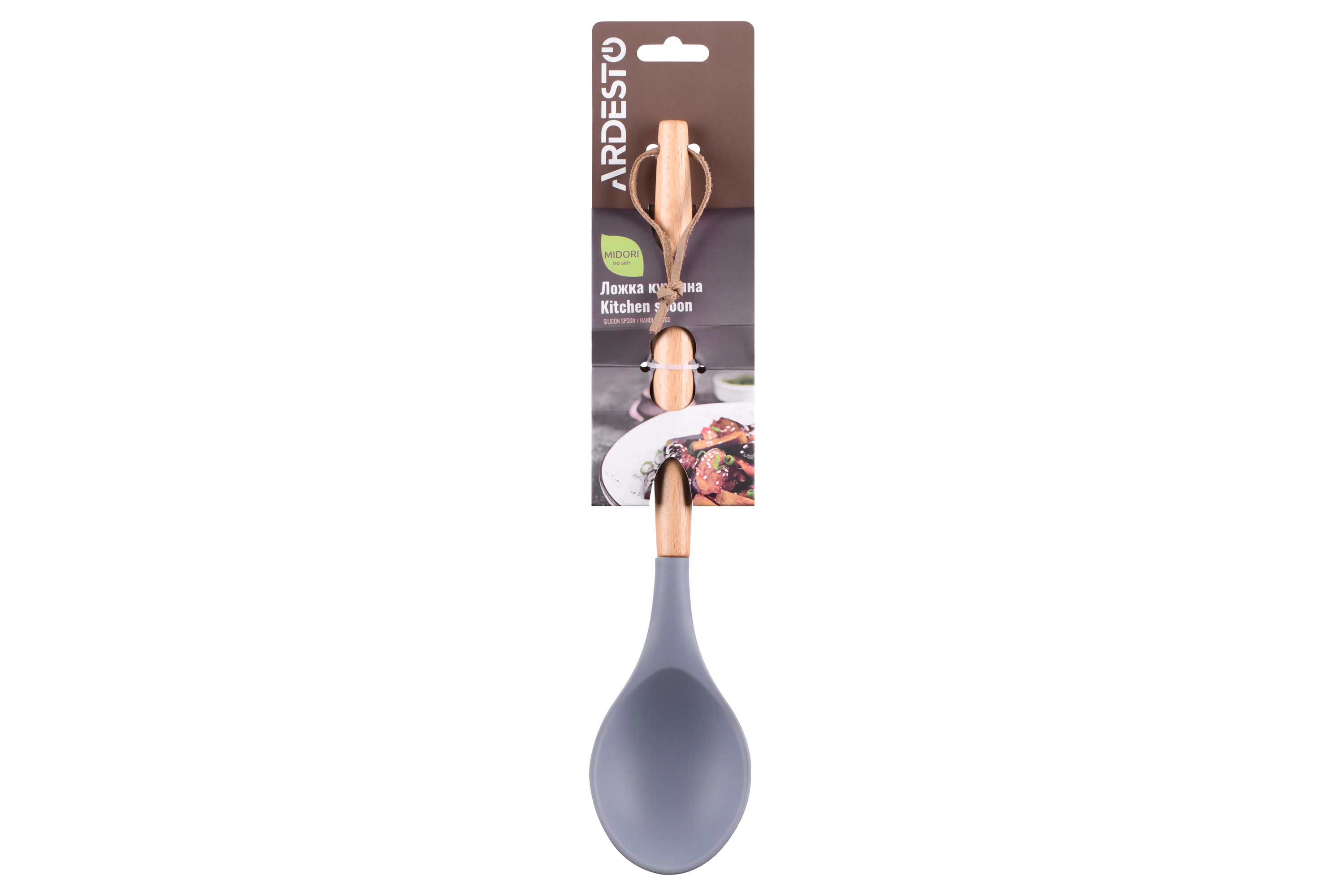 Ложка Ardesto Midori, 31.8см, силікон, дерево, сірий AR3017GB - купити в магазині