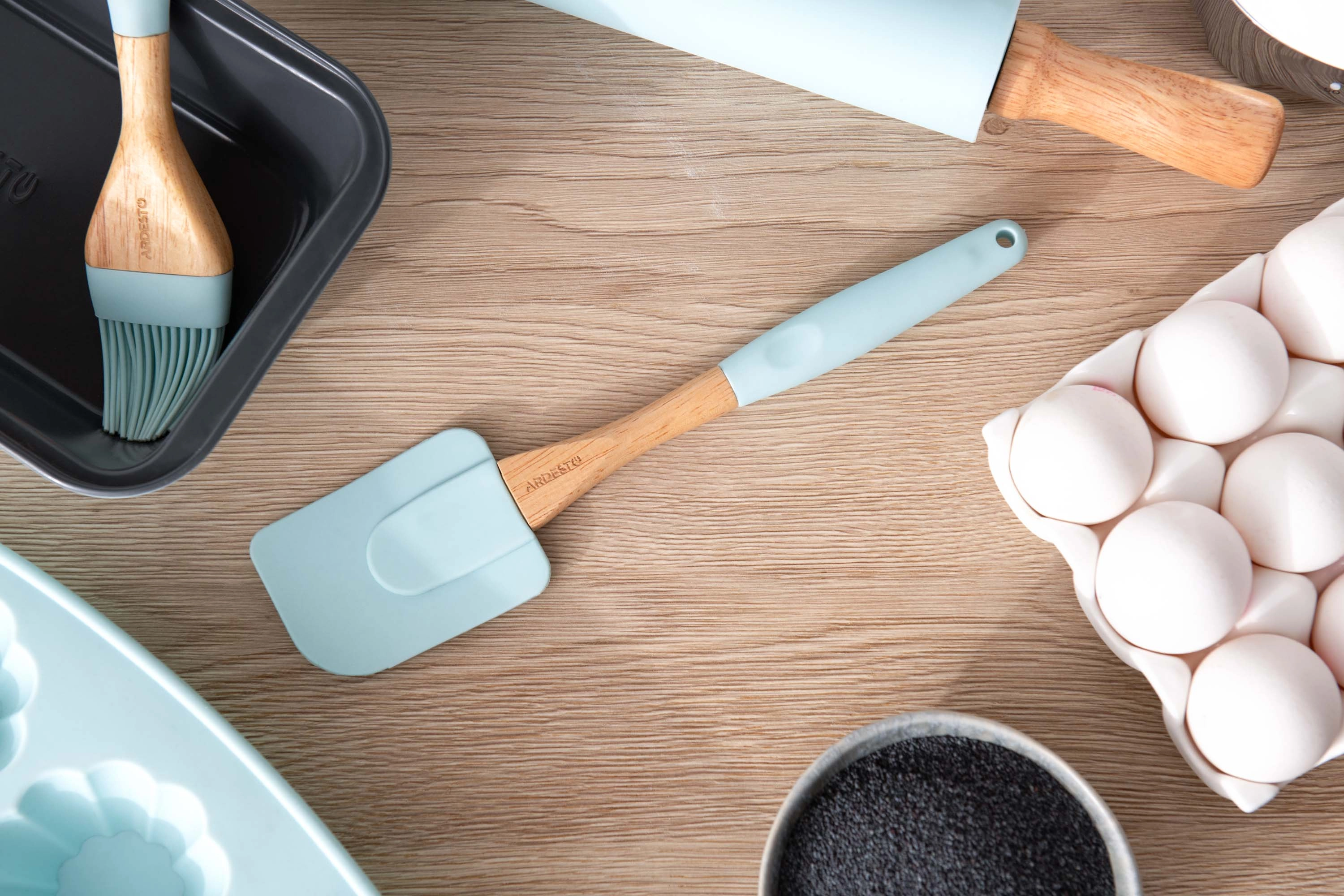 Лопатка Ardesto Tasty Baking, 26.7см, силікон, дерево, блакитний AR2325T - інтернет магазин europosud.ua!