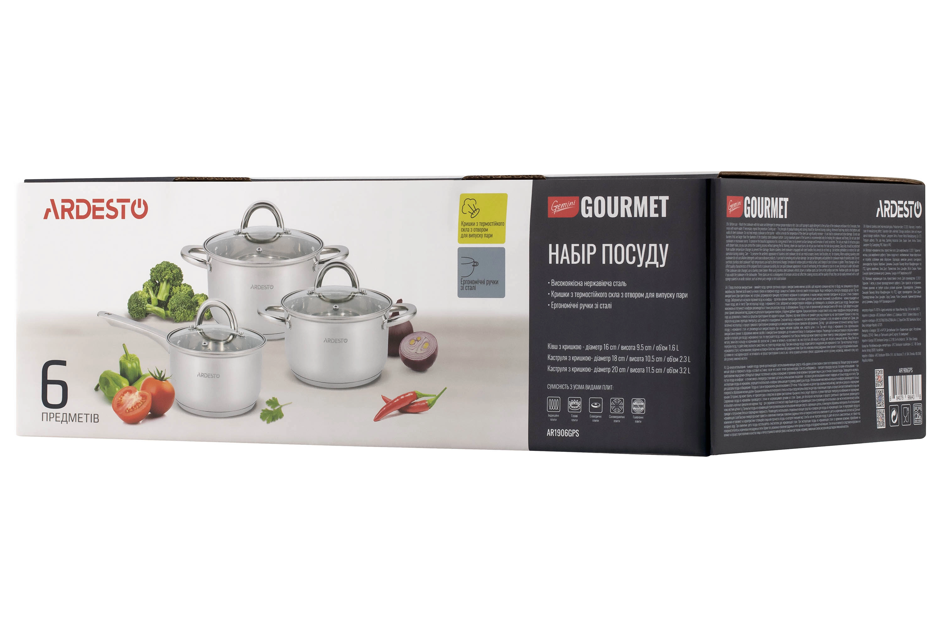 Набір посуду Ardesto Gemini Gourmet Andria, 6 предметів, нержавіюча сталь AR1906GPS - інтернет магазин europosud.ua!