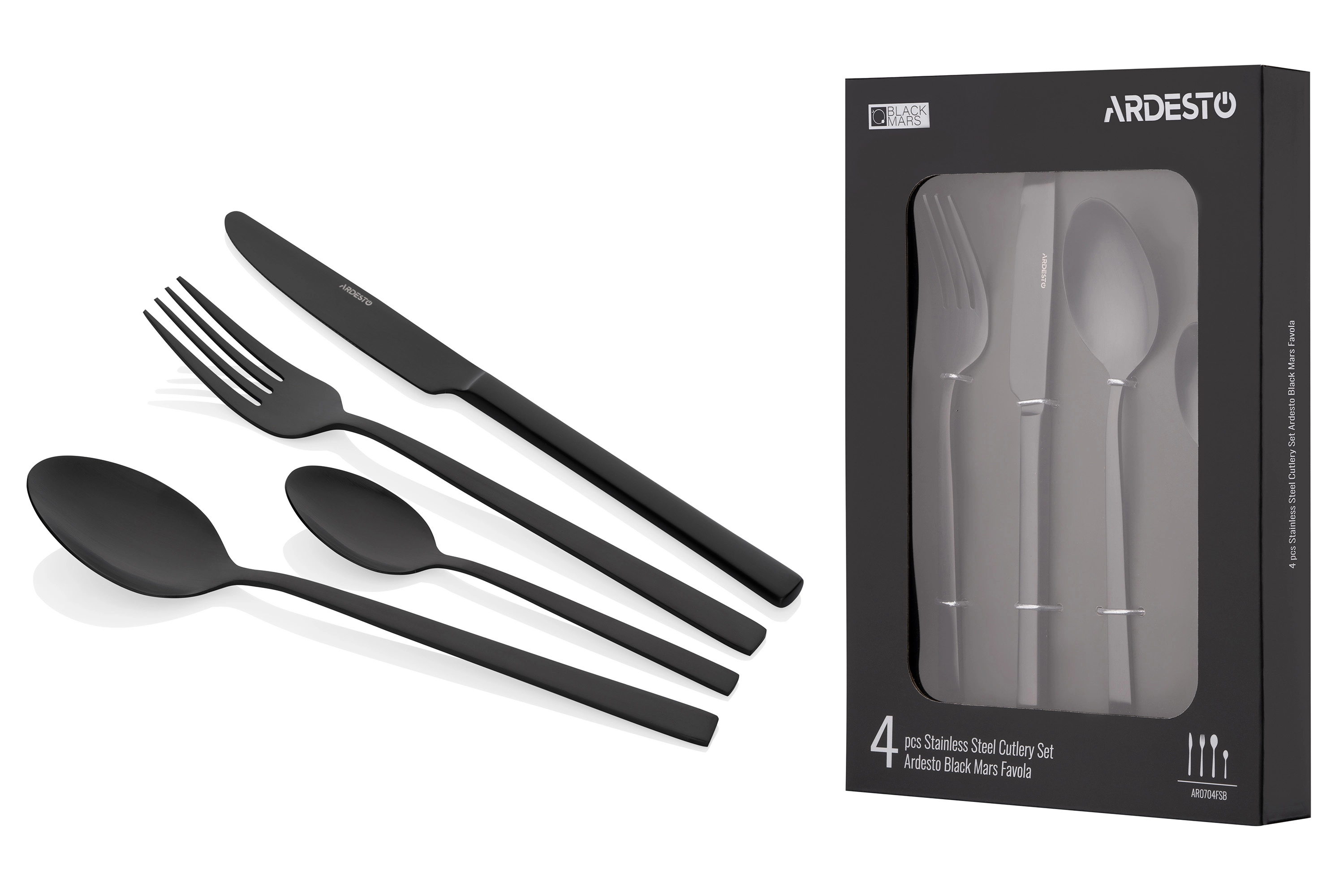 Набір столових приборів Ardesto Black Mars Favola, 4 прибори, нержавіюча сталь, чорний AR0704FSB - інтернет магазин europosud.ua!