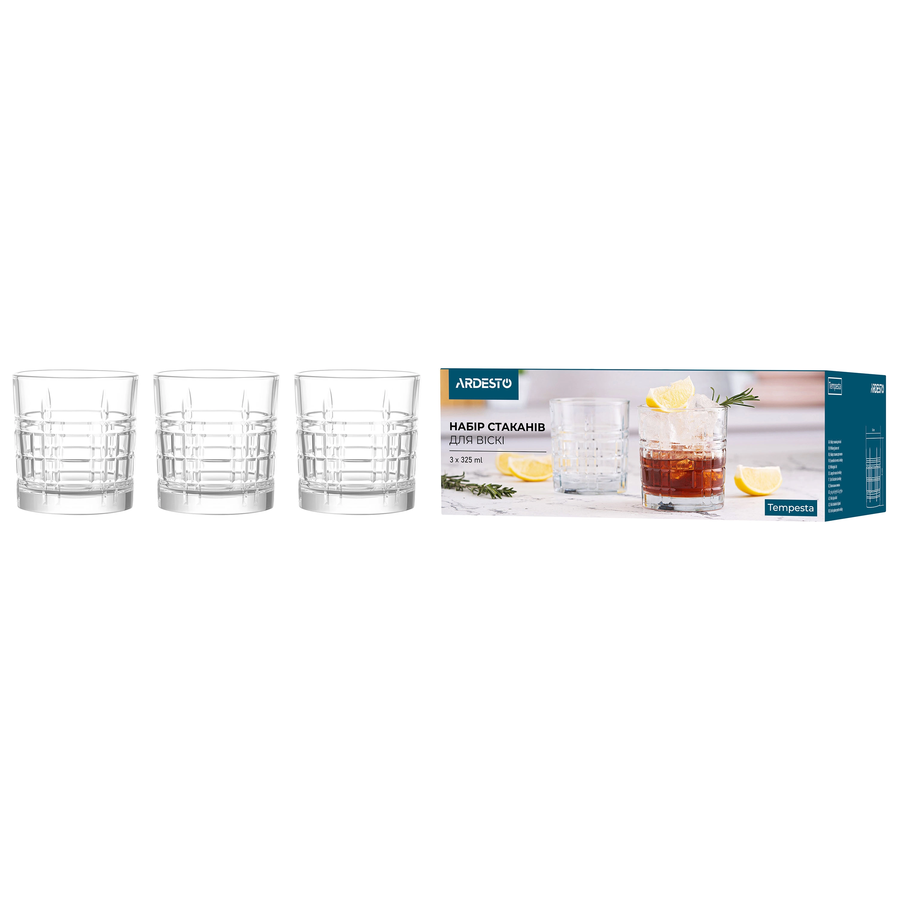 Набір склянок для віскі Ardesto Tempesta 325мл, 3шт, скло, прозорий AR2632WTT - інтернет магазин europosud.ua!