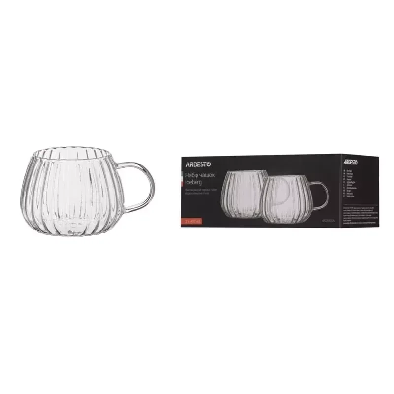 Набір чашок Ardesto Iceberg, 400мл, 2шт, боросилікатне скло, прозорий AR2640GA - інтернет магазин europosud.ua!