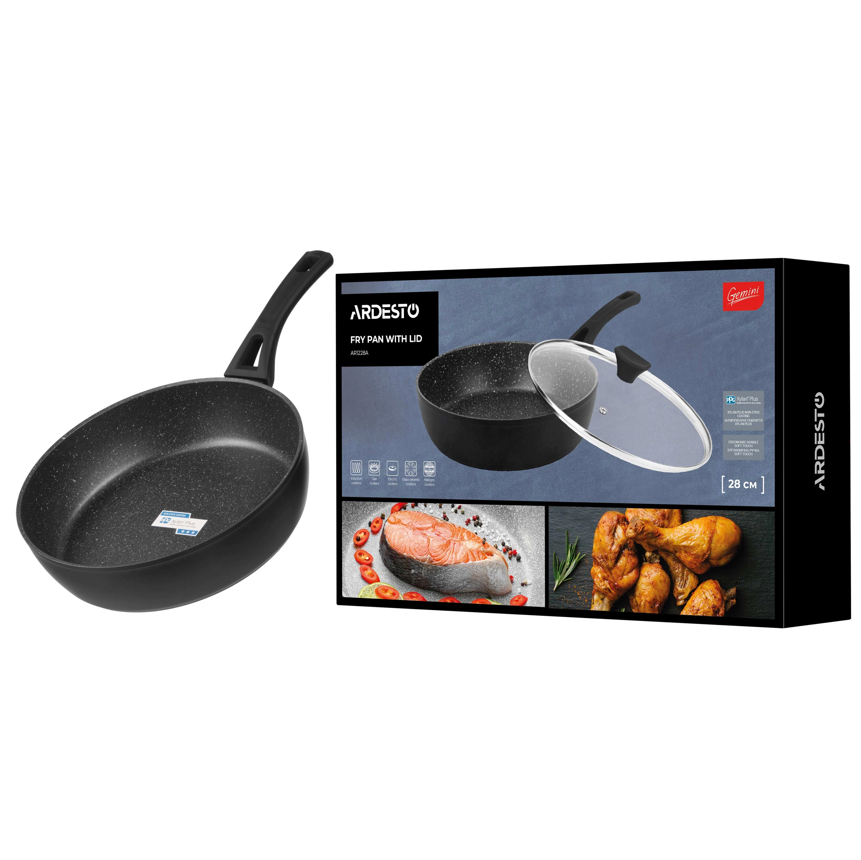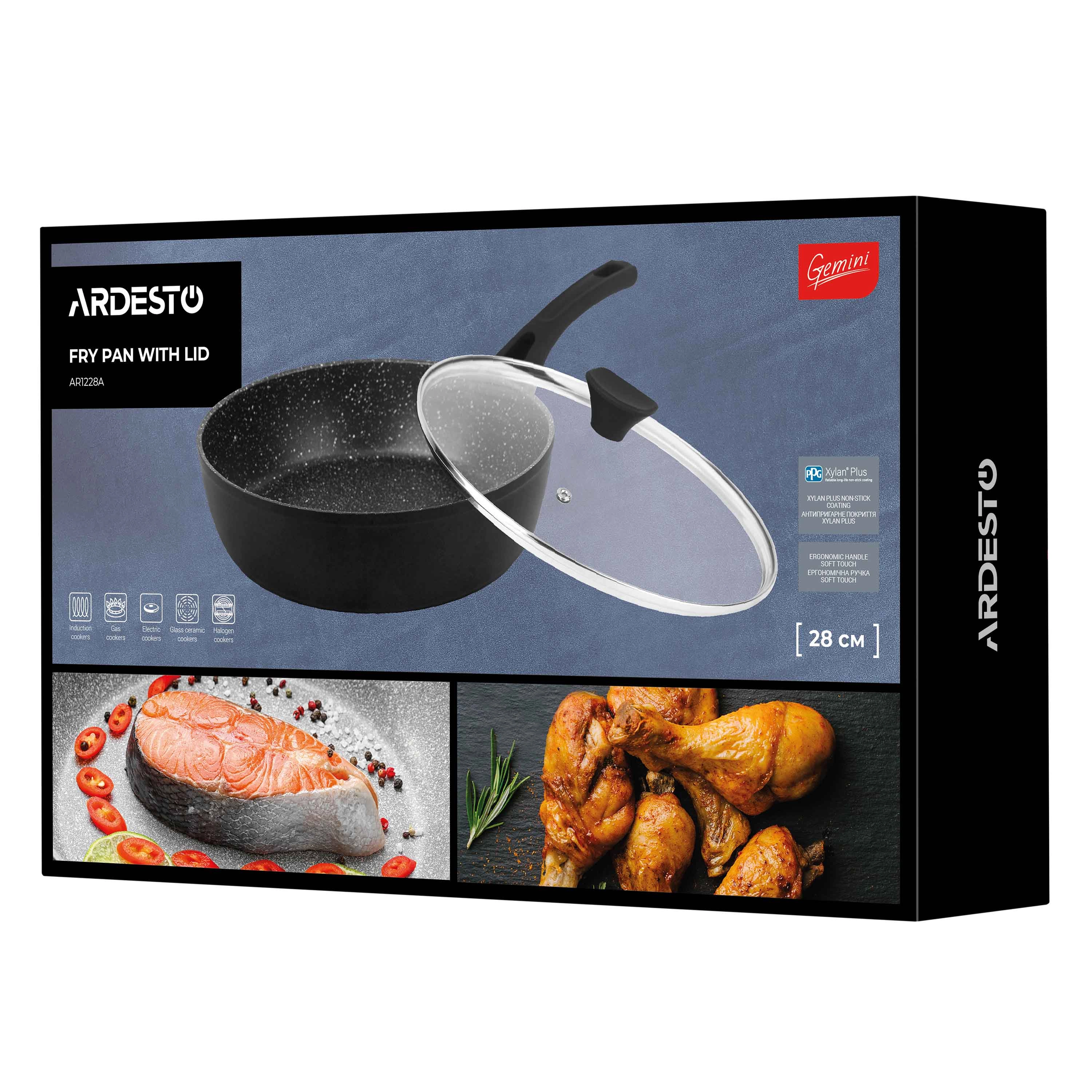 Сковорода глибока з кришкою Ardesto Gemini Livorno, 28см, алюміній, чорний AR1228A - інтернет магазин europosud.ua!