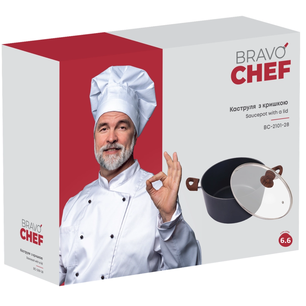 Каструля Bravo Chef класична 28 см (6.6 л) з кришкою (6859890) BC-2101-28 - інтернет магазин europosud.ua!