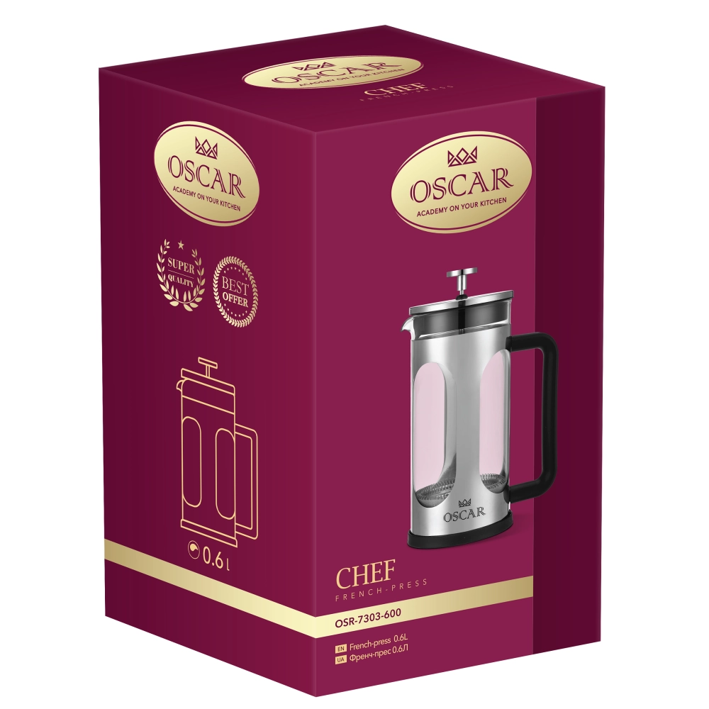 Френч-прес Oscar Chef, 0.6 л (6908254) OSR-7303-600 - інтернет магазин europosud.ua!