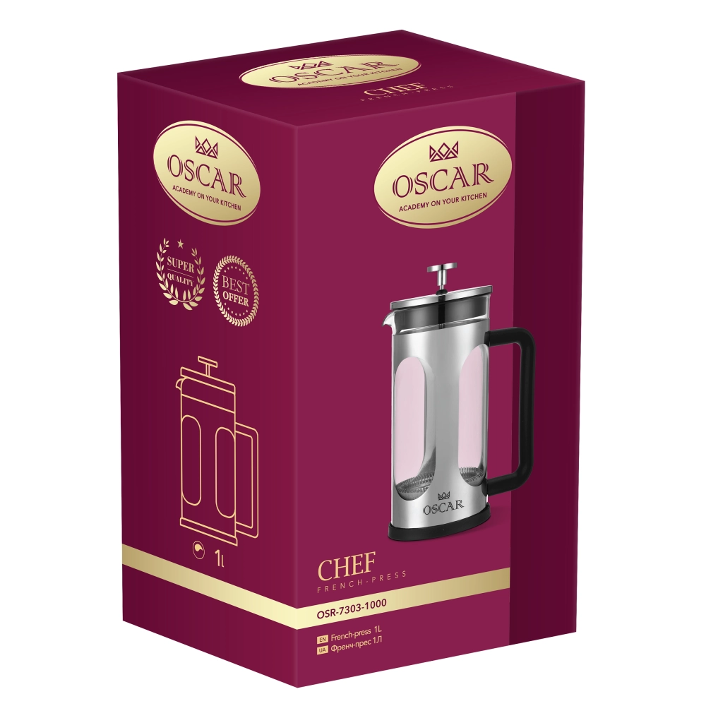 Френч-прес Oscar Chef, 1л (6908255) OSR-7303-1000 - інтернет магазин europosud.ua!