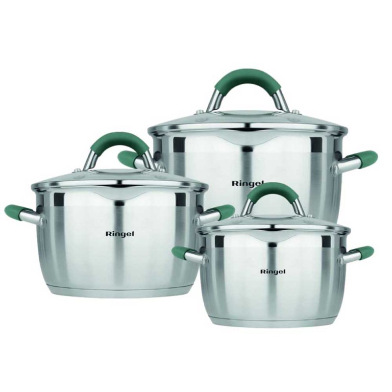 Набір посуду Ringel виготовлений з високоякісної нержавіючої сталі, завдяки чому кожен виріб отримує гарантований захист від корозії і деформації, а також не боїться нагріву до високих температур. Разом із цим матеріал, з якого виготовлено набір посуду Ringel, є повністю безпечним для здоров\'я. Товщина стінок cерії EXPERT 0,5 мм, що забезпечує його міцність і довговічність.