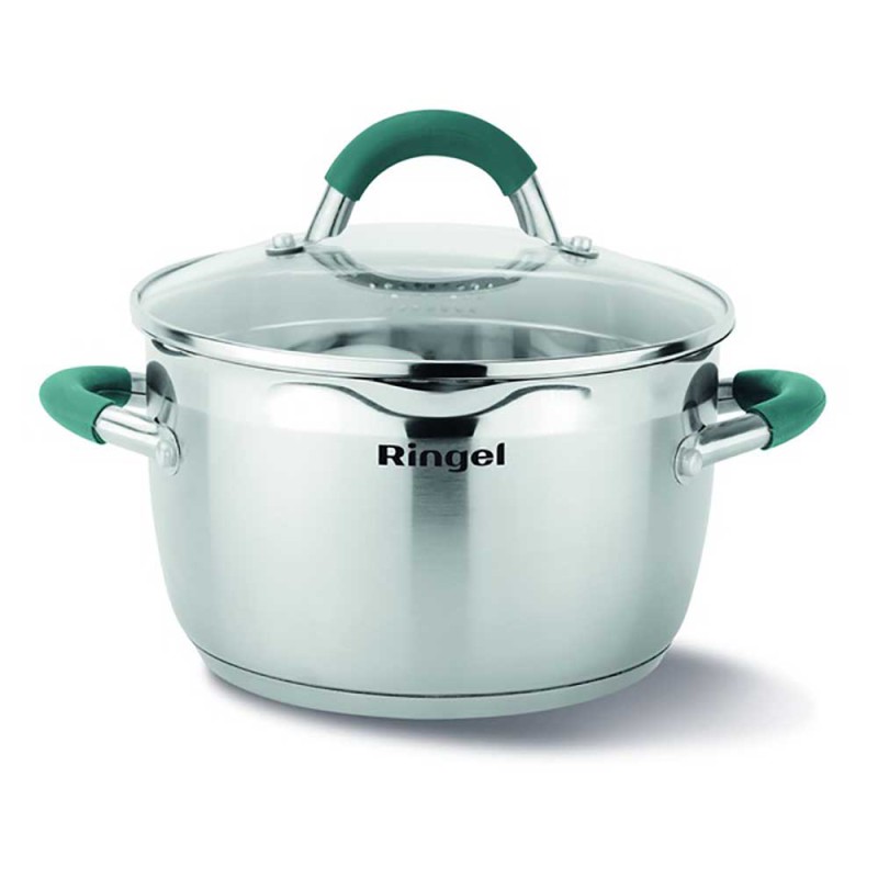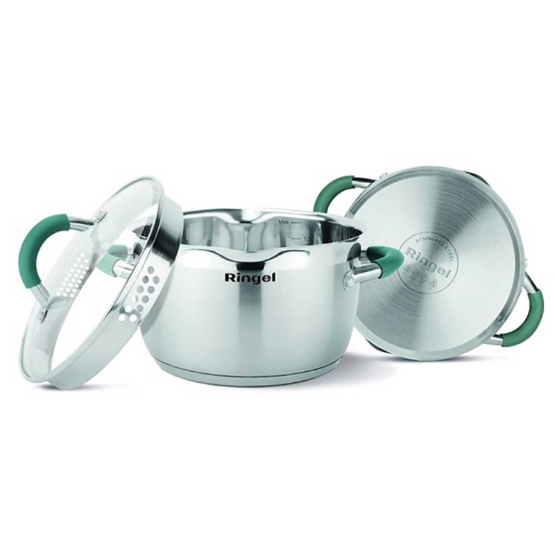 Мірна шкала на внутрішній стороні стінки каструлі Ringel допомагає точніше дотримуватися пропорцій сухих і рідких інгредієнтів. Прозора кришка з термостійкого скла оснащена клапаном для виходу пари, що дозволяє стежити за приготуванням їжі та випускати зайву пару, не знімаючи кришку з каструлі. Спеціальні жолоби для злиття рідини роблять процес приготування максимально зручним, легким і комфортним.
