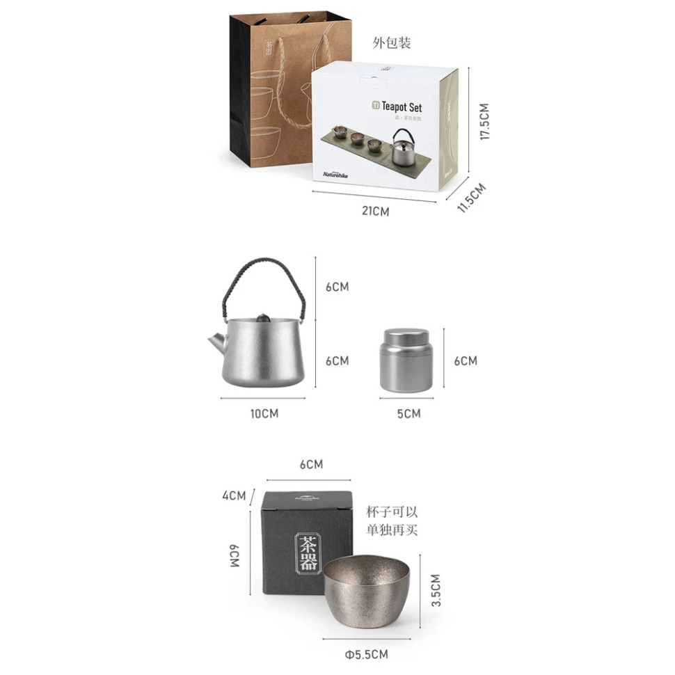 Набір чайний Naturehike NH20CJ007, титан 6927595749630 - купити в магазині