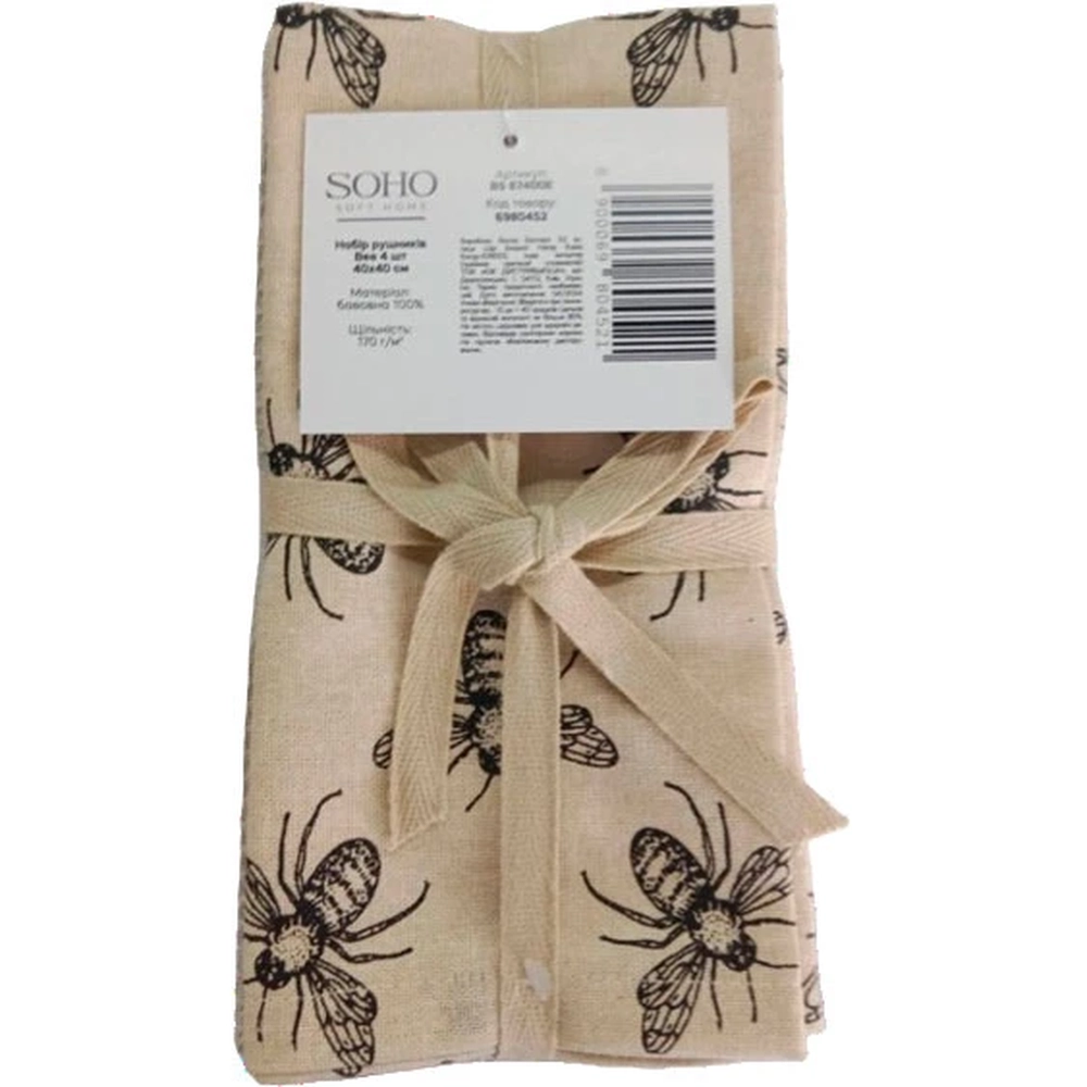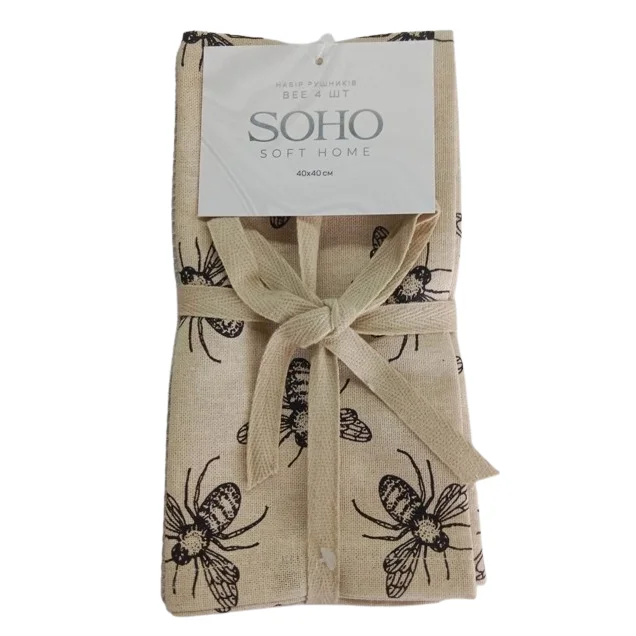 Кухонний текстиль SOHO Наб. руш. 40*40см бавовна 100% Bee 4 шт. BS 87400E - інтернет магазин europosud.ua!