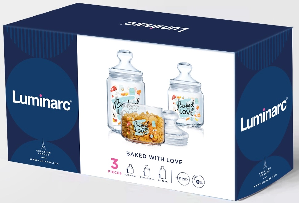 Банка LUMINARC CLUB BAKED WITH LOVE НАБІР 3х0.5, 0.75, 1 л (V6758) - інтернет магазин europosud.ua!