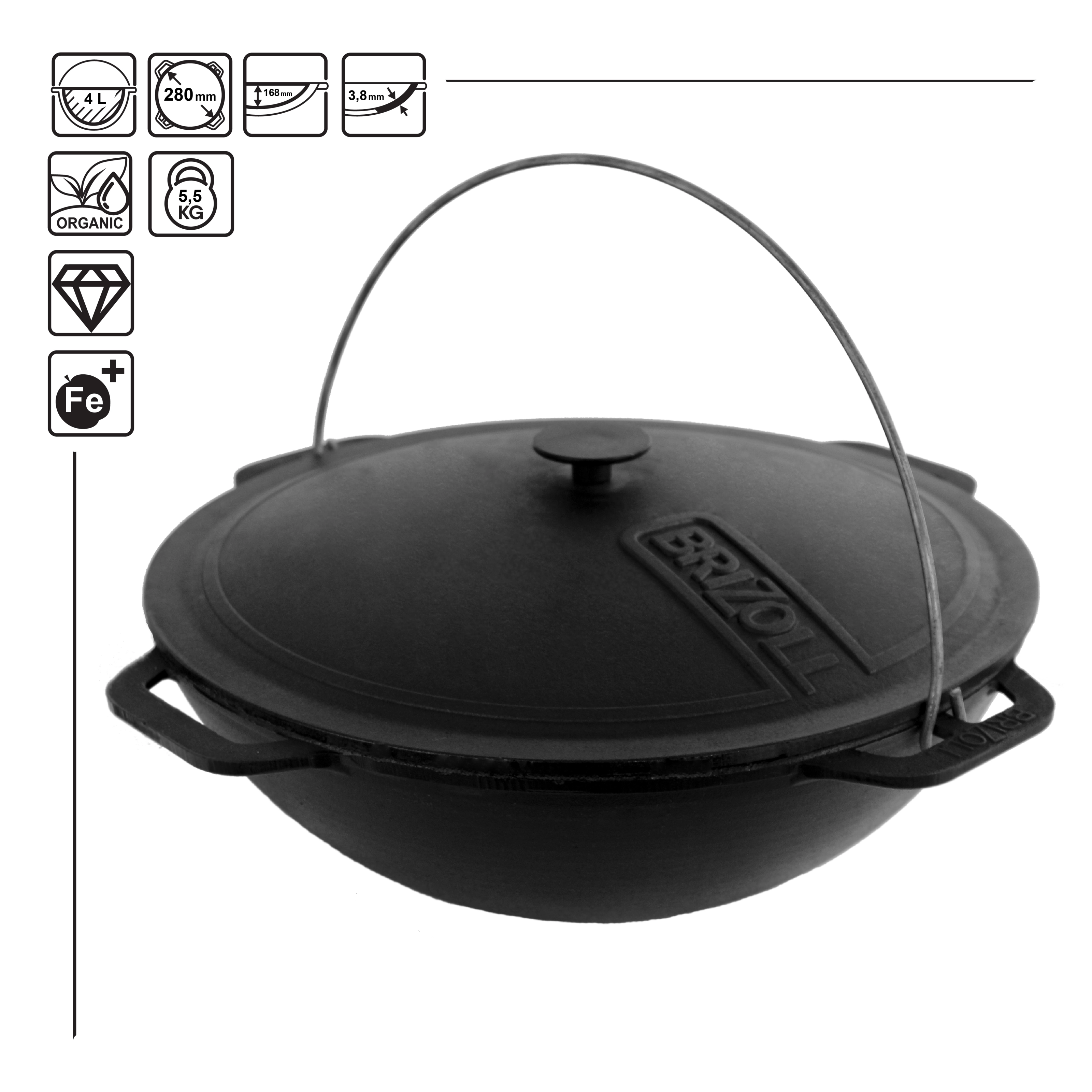 Наступна позиція - Казан чавунний азіатський 4 л з кришкою-сковородою та триногою Brizoll KA04-2TЯкщо у конкурентів ціна: 1739₴ - телефонуйте.