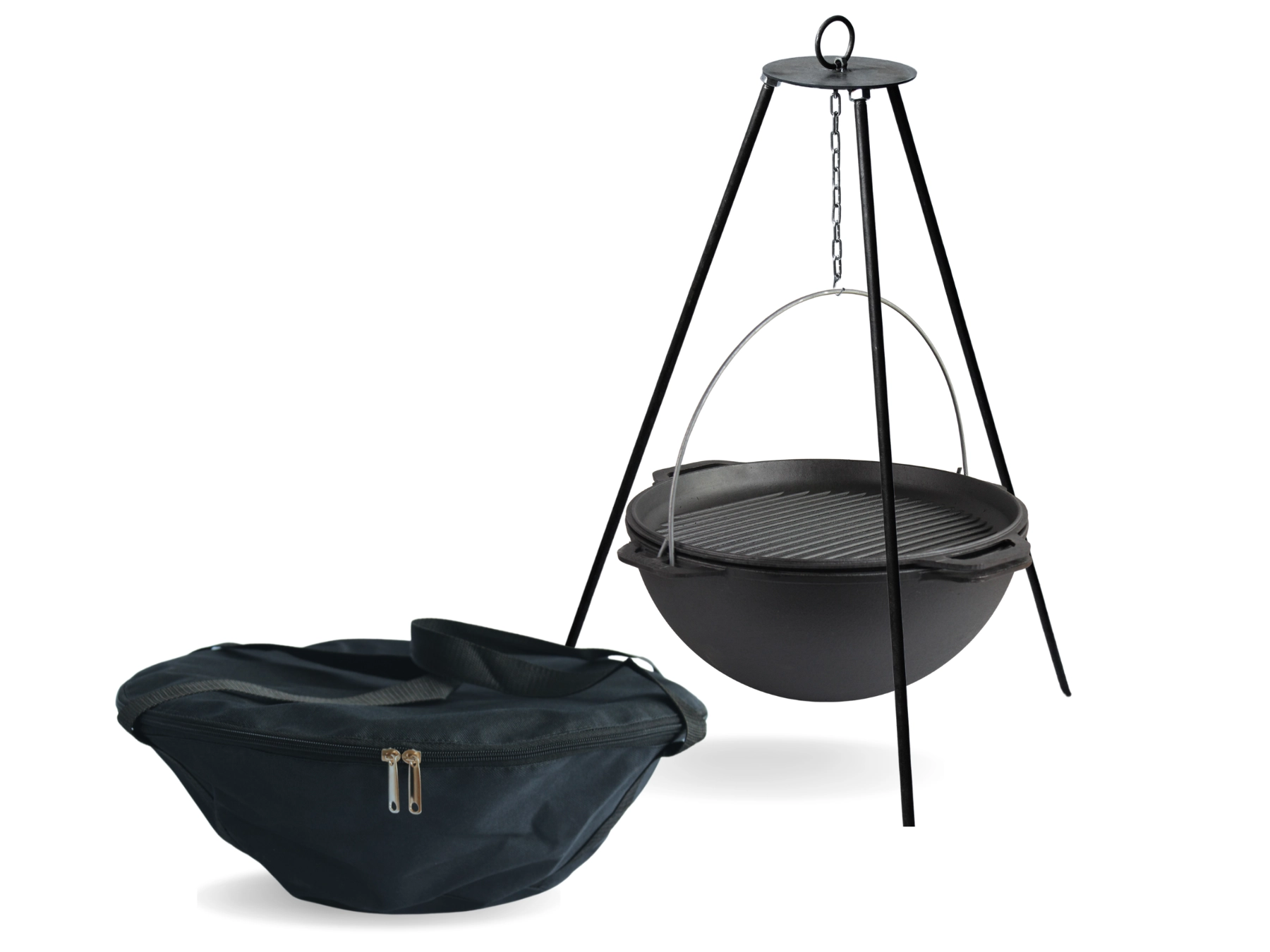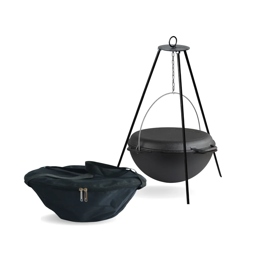 Казан чавунний азіатський 10 л з кришкою-сковородою гриль, чохлом та триногою Brizoll KA10-3TCH - інтернет магазин europosud.ua!