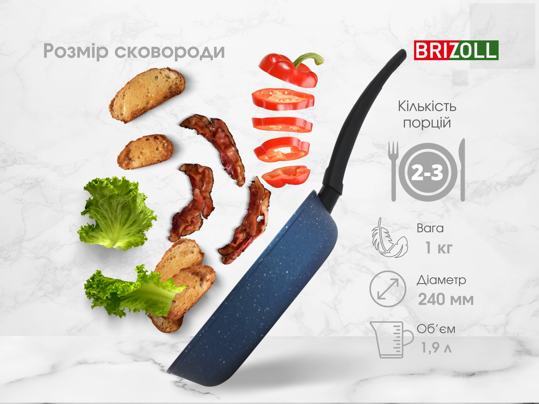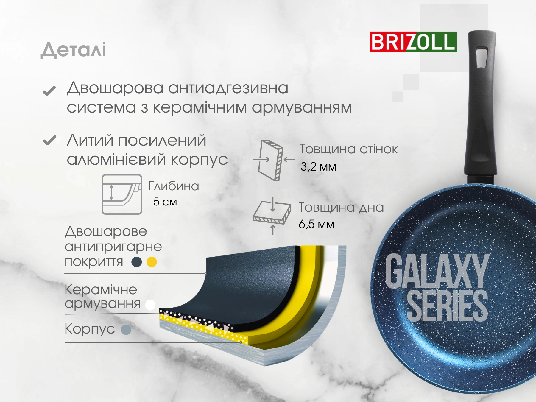 Сковорода 24 см з антипригарним покриттям GALAXY зі скляною кришкою Brizoll 56-2450-6 - купити в магазині