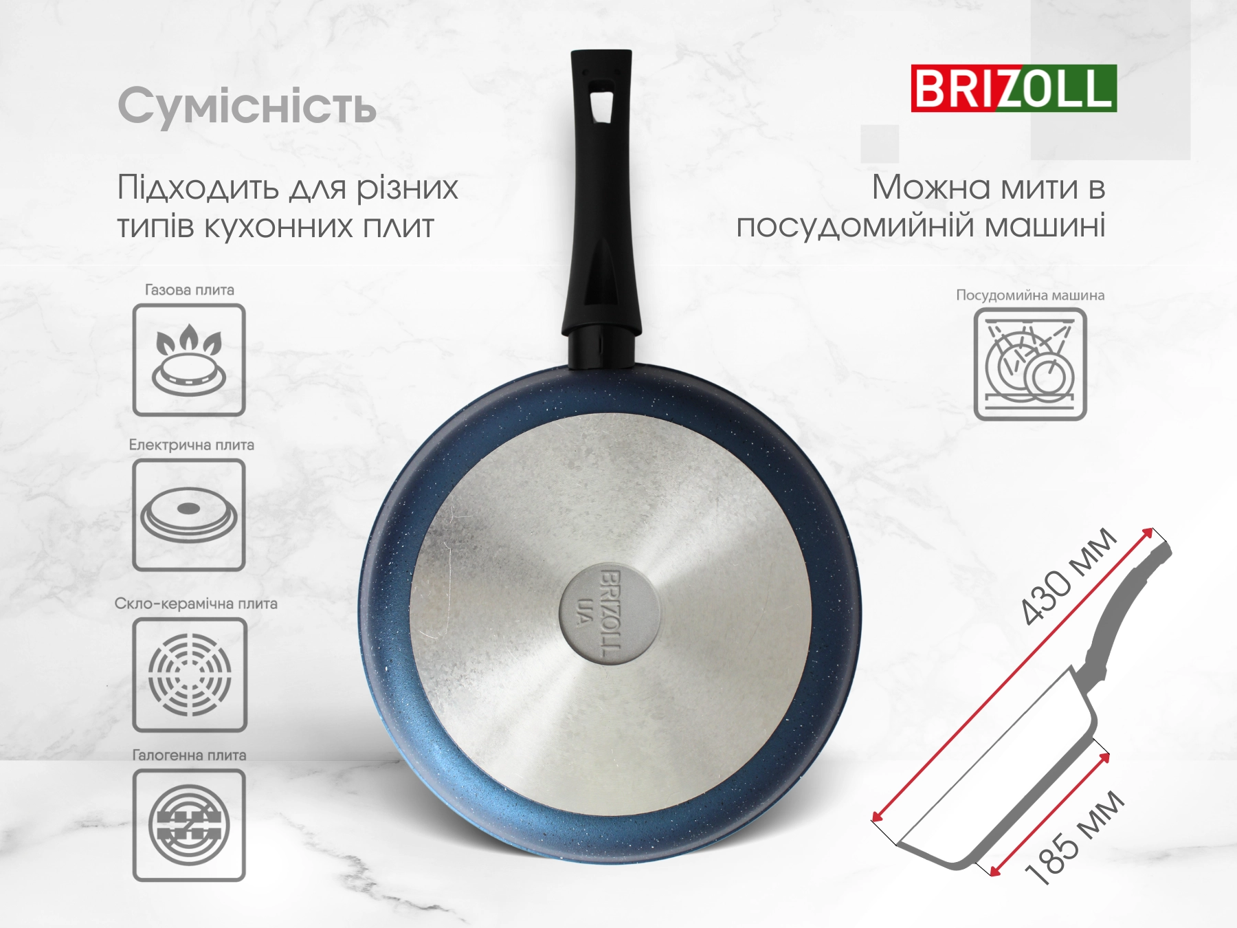 Наступна позиція - Сковорода 26 см з антипригарним покриттям GALAXY зі скляною кришкою Brizoll 56-2655-6Якщо у конкурентів ціна: 769₴ - телефонуйте.