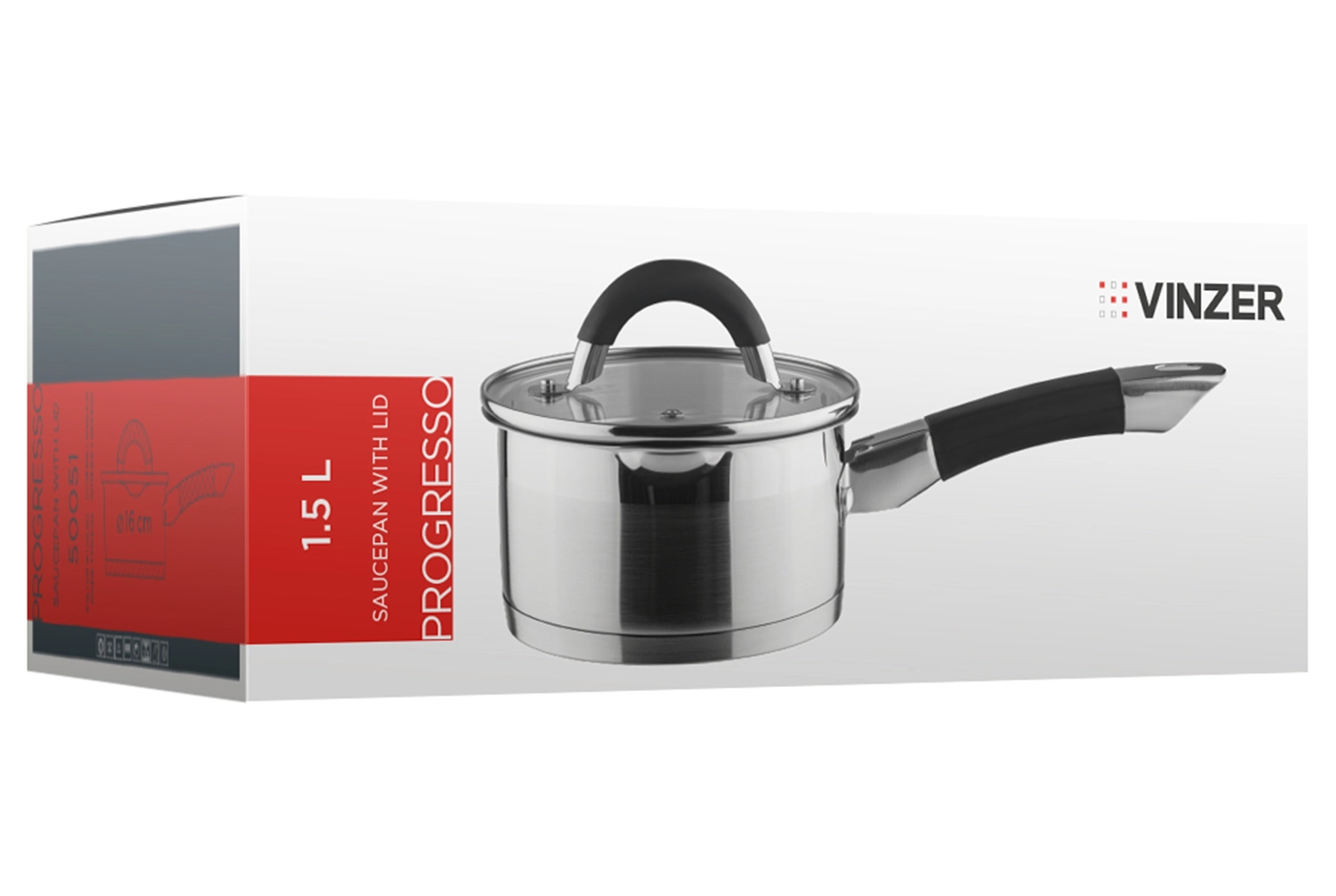 50051 Сотейник з кришкою Progresso Series 16см, 1.5л Vinzer - інтернет магазин europosud.ua!