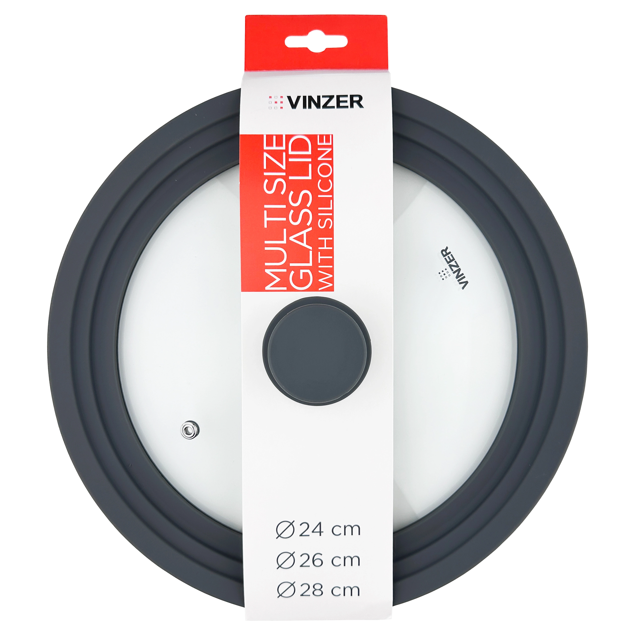 50253 Кришка скляна з силіконовим ободом, мультирозмірна, 24 26 28 см Vinzer - купити в магазині
