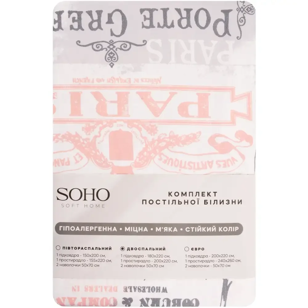 Комплект SOHO Комплект пост.білизни Двоспальний 180*220 Paris WY23-668-3-3 - купити в магазині