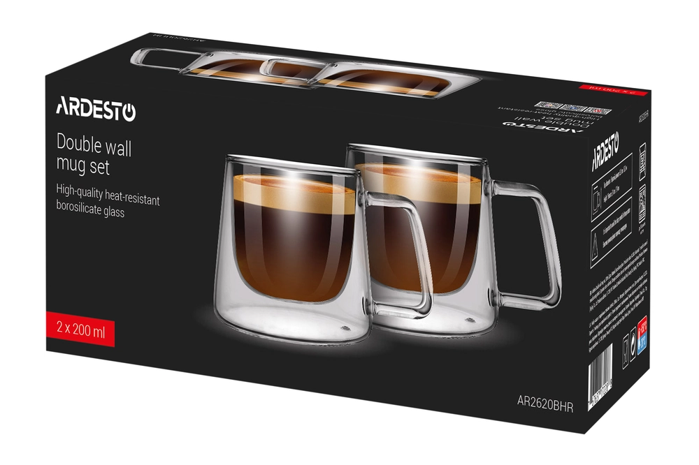 ARDESTO Набір чашок з ручками і подвійними стінками, 200мл, 2шт, боросилікатне скло, прозорий Ardest - купити в магазині