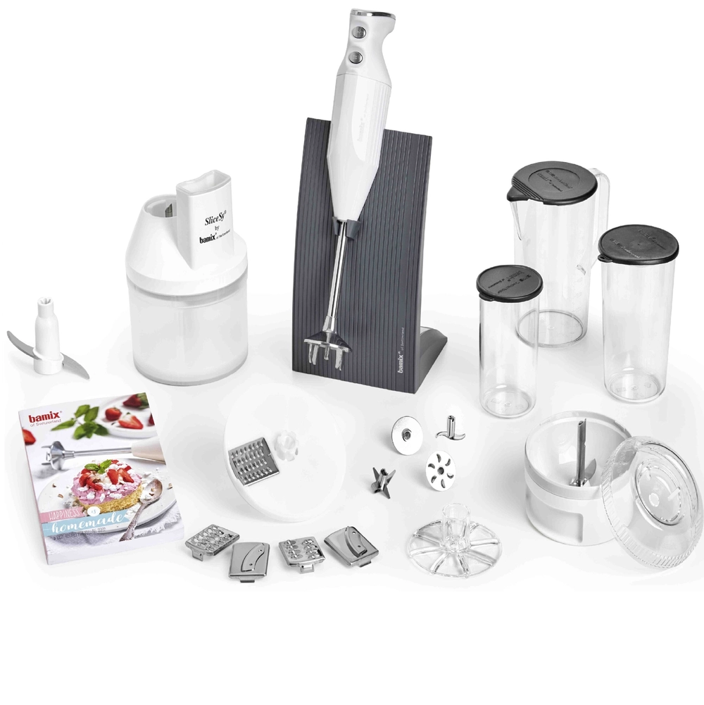 Блендер Bamix Superbox Baking, 13 компонентів, модуль SliceSy, білий, підставка (1051.023) 1051.023 - інтернет магазин europosud.ua!